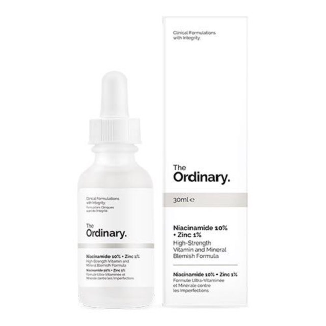 Bill Anh ảnh 2 :* Hàng chính hãng vợt từ web Anh, date sx mới nhất Serum The Ordinary Niacinamide 10% + Zinc 1%‼️ Giá bán: 199k/sp (30ml) The Ordinary là một nhánh mỹ phẩm của công ty DECIEM – Canada, ra đời với mục đích tiên phong là một bộ sưu tập các phương pháp trị liệu cung cấp các công nghệ lâm sàng quen thuộc, hiệu quả dưới hình thức khiêm nhường và chân thật nhất. Các sản phẩm của họ thường được bào chế dưới nồng độ cao các chất đặc trị tinh khiết, đem lại hiệu quả rõ ràng với cái giá phải chăng. Niacinamide 10% + Zinc 1% – Serum chống viêm, giảm kích ứng dành cho da MỤN Niacinamide (Vitamin B3) được chỉ định để làm giảm mụn kích ứng và tình trạng tắc nghẽn lỗ chân lông. Serum có nồng độ cao 10% Niacinamide, lại được hỗ trợ trong công thức cùng muối kẽm 1% Zinc của axit carboxylic pyrrolidone giúp cân bằng sự hoạt động của tuyến dầu. Đây sẽ là sự lựa chọn hoàn hảo cho da dầu mụn với chức năng giảm dầu, ngăn tắc nghẽn lỗ chân lông và giảm mụn trông thấy ❌❌❌Chống chỉ định: Nếu bạn dùng kèm Vitamin C trong routine, nên áp dụng luân phiên đối với sản phẩm này (tốt nhất là Vitamin C buổi tối và serum này buổi sáng). Nếu không, Niacinamide có thể ảnh hưởng đến chức năng của Vitamin C dạng nguyên chất (L-Ascorbic Acid). Sản phẩm được khuyên dùng kèm các phương pháp điều trị mụn trứng cá khác nếu muốn da mụn được hỗ trợ tốt nhất. —————–