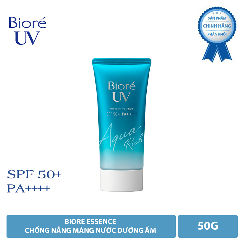Chứa phân tử ngậm nước. Công thức giúp dưỡng ẩm da. Chứa Hyaluronic Acid (Sodium Hyaluronate) & chiết xuất Sữa Ong Chúa. Chống thấm nước siêu việt. Đã kiểm chứng không gây mụn. Kiểm nghiệm không gây dị ứng.** BIORE ESSENCE CHỐNG NẮNG MÀNG NƯỚC DƯỠNG ẨM Thông tin sản phẩm BIORÉ ESSENCE CHỐNG NẮNG MÀNG NƯỚC DƯỠNG ẨM Bioré UV Aqua Rich Watery Essence SPF50+/PA++++ 50G (Dành cho mặt, cổ & vai) Độc quyền từ Bioré OUTER SKIN – MÀNG CHẮN VI ĐIỂM Bảo vệ da hoàn hảo mà không gây bết dính NGĂN TIA UV TỐI ƯU – SIÊU THOÁNG NHẸ DA Che phủ cả những điểm siêu nhỏ mà mắt thường không thấy được 6 ƯU ĐIỂM KHI SỬ DỤNG BIORÉ UV AQUA ESSENCE 1. Chứa phân tử ngậm nước. Công thức giúp dưỡng ẩm da. 2. Chứa Hyaluronic Acid (Sodium Hyaluronate) & chiết xuất Sữa Ong Chúa. 3. Chống thấm nước siêu việt (Thử nghiệm khả năng chống nước lên đến 80 phút) nhưng dễ dàng rửa sạch với sữa rửa mặt, sữa tắm. 4. Không thêm màu. 5. Đã kiểm chứng không gây mụn (Non-Comedogenic tested).** 6. Kiểm nghiệm không gây dị ứng.** Thấm nhanh trên da, tạo lớp bảo vệ trong suốt không bị bệt trắng sau khi thoa. Có thể dùng như lớp lót trang điểm, kết hợp tốt với kem nền cho bạn làn da mịn như lụa. Hương hoa Linh Lan Trắng. Cách dùng: Lấy một lượng thích hợp, thoa đều trên khắp bề mặt da. Tránh tiếp xúc trực tiếp với quần áo. Khuyên mặc quần áo sau khi chất lỏng đã khô hoàn toàn. Để đạt hiệu quả tốt nhất, nên thoa lại sau khi ra mồ hôi. Có thể dùng sản phẩm tẩy trang, sữa rửa măt hay sữa tắm để làm sạch Thông tin thương hiệu Bioré là thương hiệu mỹ phẩm chăm sóc da Nhật Bản, được sáng lập vào năm 1980 bởi tập đoàn KAO danh tiếng. Nguồn gốc tên gọi Bioré của thương hiệu chăm sóc da mặt nổi tiếng khắp thế giới này được kết hợp hai từ theo tiếng Nhật chứa đựng hai yếu tố quan trọng với con người: nếu Bio mang ý nghĩa biểu trưng cho sự sống thì Ore là vàng, nó bao hàm cả vẻ đẹp, sự thông minh, và tính nguyên bản. Không chỉ là dòng mỹ phẩm quen thuộc tại Việt Nam, Bioré còn được ưa chuộng ở nhiều nước Châu Á khác vì luôn đáp ứng được những nhu cầu khác nhau của phái đẹp trong việc chăm sóc da với các sản phẩm đa dạng về chủng loại, từ sữa rửa mặt, sữa tắm, sản phẩm tẩy trang, sản phẩm chống nắng đến miếng dán mũi lột mụn. Bạn có thể tham khảo thêm những dòng sản phẩm đa dạng khác tại gian hàng chính hãng Biore.