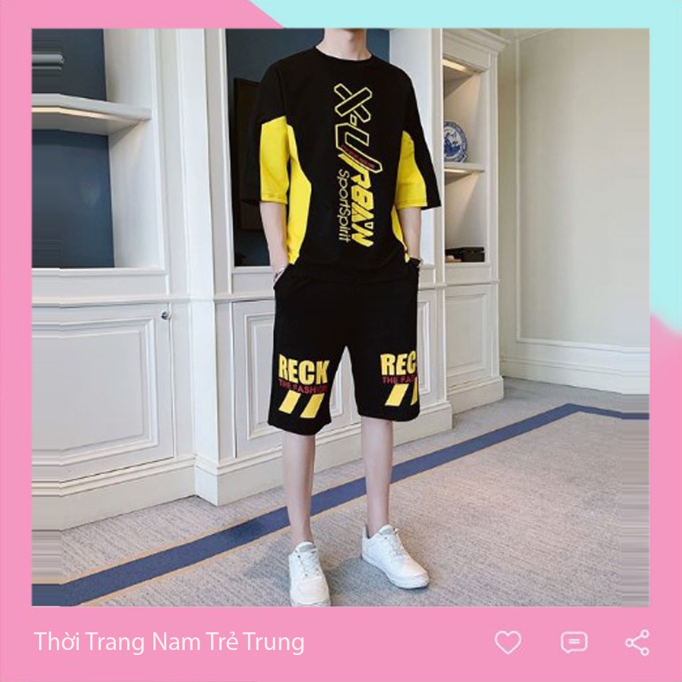 Bộ sản phẩm: BLACKPJNK BỘ QUẦN ÁO THUN NAM MÀU ĐEN CHỈ VÀNG.