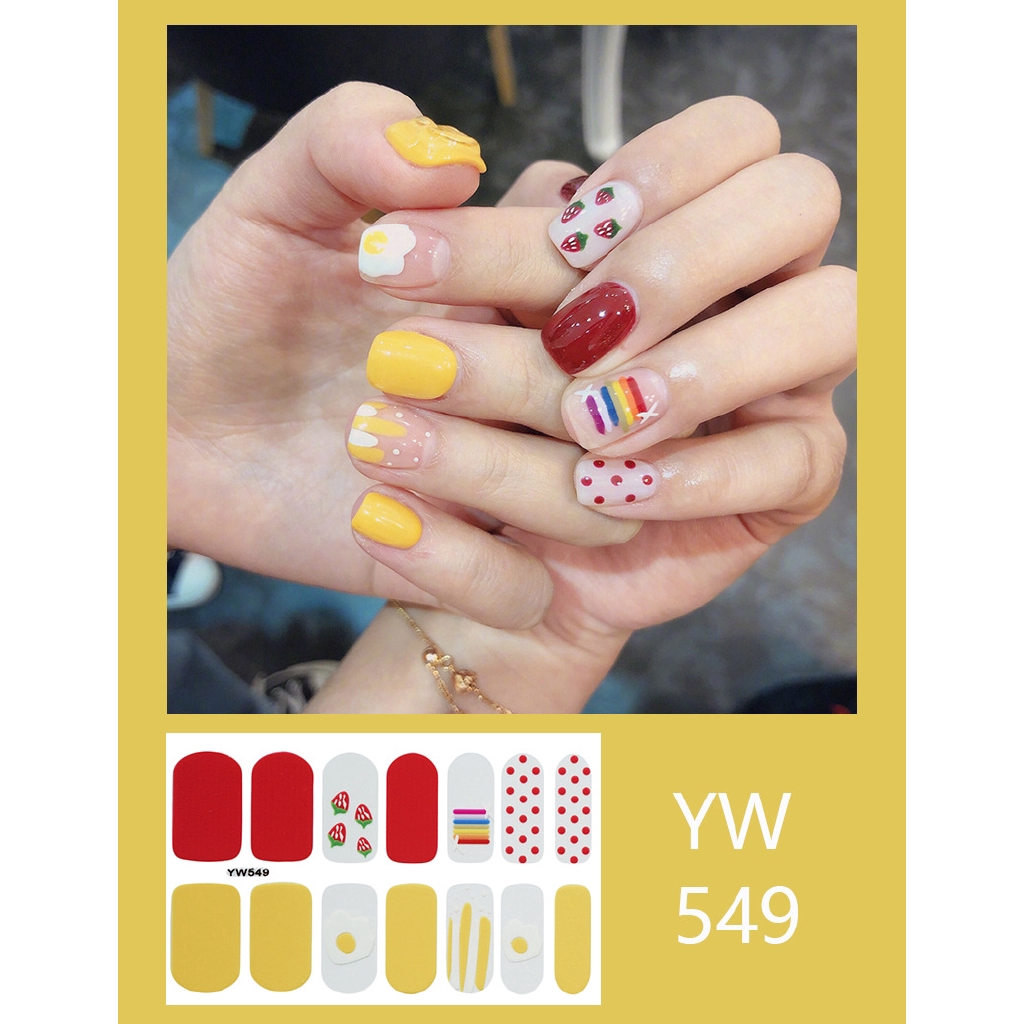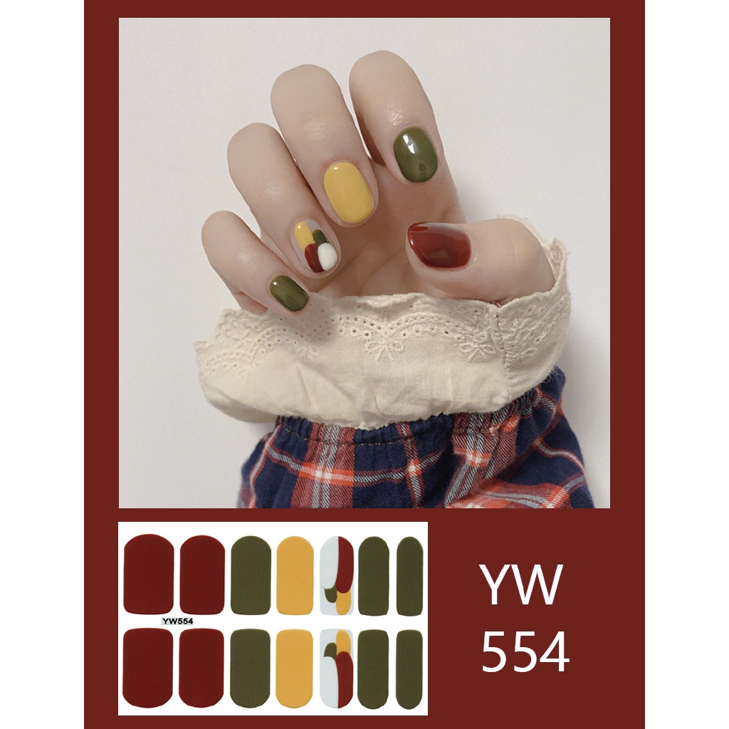 Bộ sản phẩm: Bộ 14 Miếng Dán Móng Tay Chống Thấm Nước Bền Màu Kiểu Hàn Quốc.