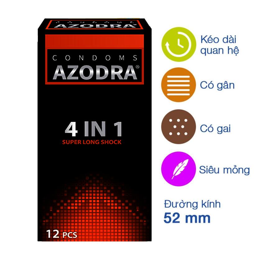 Bộ sản phẩm Bộ 2 Bao cao su Malaysia Azodra 4 in 1 – kéo dài thơi gian – 24 chiếc Thương hiệu: AZODRA.