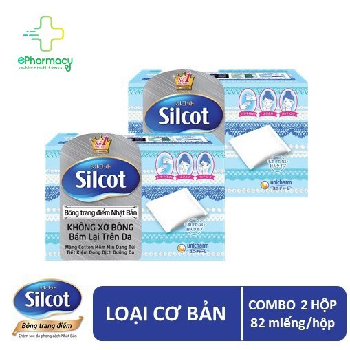 Bộ sản phẩm: Bộ 2 Hộp Bông tẩy trang Silcot Nhật Bản Hộp 82 miếng – Combo 2 Hộp Silcot Unicharm 82 miếng cơ bản.