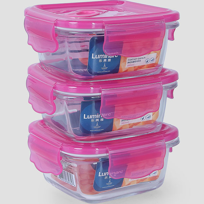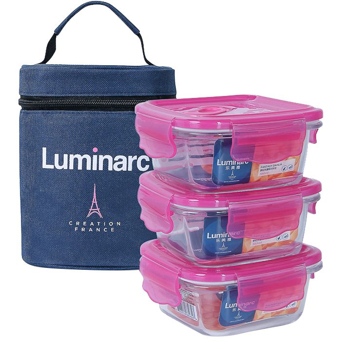 Bộ sản phẩm Bộ 3 Hộp Đựng Cơm Thủy Tinh Luminarc Pure Dahlia Vuông có túi LUHON8744 (3 Hộp 380ml) Thương hiệu: Luminarc.