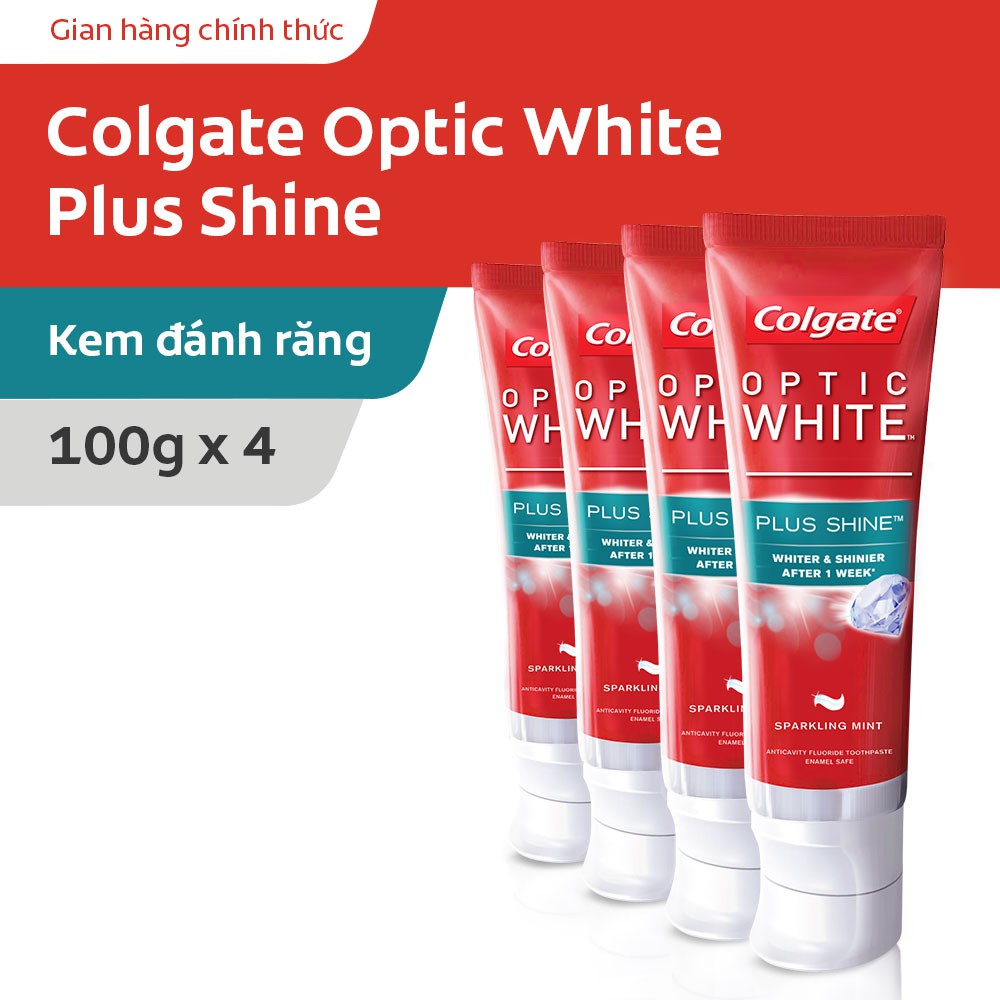 Bộ 4 Kem đánh răng Colgate làm trắng răng & sáng răng 100g/hộp * Mô tả: Kem đánh răng Colgate Plus Shine chứa công nghệ làm trắng giúp loại bỏ mảng bám & các hạt vi tinh thể giúp đánh bóng răng, cho nụ cười tỏa sáng. * Công dụng: Chứa chất làm trắng & hạt vi tinh thể. Loại bỏ mảng bám trên răng. Nhẹ nhàng đánh bóng bề mặt răng. Ngừa sâu răng & mảng bám. * Hướng dẫn sử dụng Làm ướt bàn chải đánh răng. Lấy ra một lượng kem kích cỡ hạt đậu. Nhẹ nhàng chải sạch nướu. Dần dần chải sạch từng phần nhỏ trên răng. Chải răng trong 2 phút, thực hiện 2 lần một ngày. * Hạn sử dụng: 3 năm kể từ ngày sản xuất (Xem trên bao bì) * Xuất xứ: Sản xuất tại Trung Quốc Thông tin thương hiệu COLGATE PALMOLIVE Xuất xứ thương hiệu: Mỹ Được thành lập từ năm 1806, Colgate-Palmolive là công ty đa quốc gia của Mỹ chuyên về các sản phẩm chăm sóc sức khỏe răng miệng, chăm sóc cá nhân và gia đình. Là thương hiệu lâu đời nổi tiếng với các sản phẩm chăm sóc sức khỏe răng miệng của trẻ em và người lớn, Colgate-Palmolive được cả thế giới tin dùng trong nhiều thập kỷ qua. Công ty luôn luôn nghiên cứu đổi mới, phát triển và cho ra đời nhiều dòng sản phẩm đáp ứng nhu cầu ngày càng tốt hơn để phục vụ người tiêu dùng. Hiện nay, Colgate-Palmolive đã trở thành thương hiệu chăm sóc răng miệng số 1 tại Mỹ và nhiều quốc gia khác. Hãy cùng dạo Shopee để bỏ túi cho mình những sản phẩm chất lượng từ thương hiệu Colgate-Palmolive uy tín nhé!