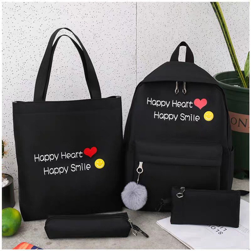 Bộ sản phẩm: Bộ 4 món balo thời trang, kèm túi ví – MẶT CƯỜI VÀNG.