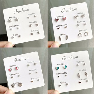 Bộ sản phẩm: Bộ 6 khuyên tai kiểu dáng đơn giản phong cách Hàn Quốc.