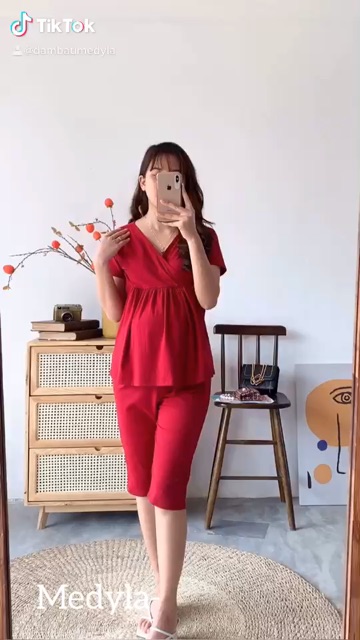 Bộ sản phẩm: Bộ bầu mặc nhà mùa hè ngắn tay – Đồ bầu sau sinh cotton thoáng mát thiết kế Medyla.