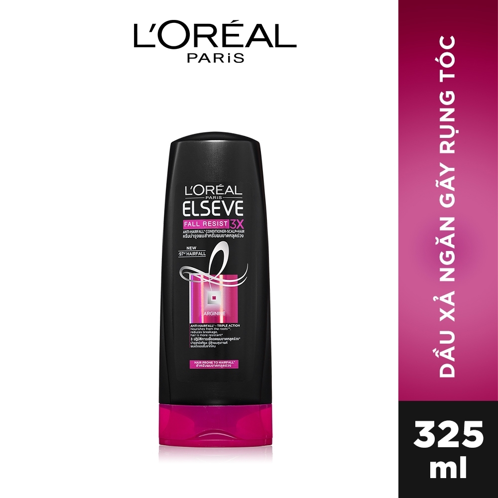 Ngăn gãy rụng chuyên sâu Phục hồi tóc hư tổn Nuôi dưỡng tóc chắc khỏe BỘ SẢN PHẨM GỒM 01x Dầu xả ngăn gãy rụng tóc L’Oreal Paris Elseve Fall Resist 3X Conditioner 325ml 01x Dầu gội ngan gãy rụng tóc L’Oreal Paris Elseve Fall Resist 3X Shampoo 650ml 01x Kem Ủ L’oreal Ngăn Rụng Tóc Fall Repair Mask 3X – 200ml • THÔNG TIN SẢN PHẨM 1. Dầu xả Giúp Ngăn Gãy Rụng Tóc L’oreal Elseve Fall Resist Cung cấp cho tóc các dưỡng chất thiết yếu, ngăn tóc gãy rụng. Sản phẩm đem đến tinh chất Argine nuôi tóc từ gốc rễ, phục hồi cấu trúc tóc, giúp tóc mọc khỏe hơn. Sản phẩm sẽ cho bạn luôn có Dầu Xả Giúp Ngăn Gãy Rụng Tóc L’oreal Elseve Fall Resist Conditioner là dầu gội ngăn tóc gãy rụng, cho mái tóc luôn chắc khỏe từ gốc đến ngọn. 2. Dầu Gội Ngăn Rụng Tóc L’oreal Được tăng cường tinh chất Argine – là một Amino Acid cần thiết giúp tái tạo cấu trúc tóc, mang đến 3 tác động toàn diện cho mái tóc của bạn nhanh chóng khỏe đẹp: – Nuôi dưỡng tóc từ gốc đến ngọn. – Phục hồi cấu trúc sợi tóc. – Kích thích sự phát triển của các sợi tóc con được khỏe mạnh hơn. – Chai lớn có dung tích 330ml với cần đẩy dầu gội tiện dụng 3. Kem Ủ L’oreal Ngăn Rụng Tóc Fall Repair Mask 3X – 200ml Tóc dễ gãy rụng do thiếu các dưỡng chất thiết yếu. Nếu không được nuôi dưỡng tận gốc rễ, tóc khó chống lại các tác động từ môi trường bên ngoài và rất dễ gãy rụng. Đối với tóc rụng, viện nghiên cứu L’Oreal Paris đã phát minh dòng sản phẩm giúp ngăn gãy rụng tóc Fall Repair 3x ba tác động. Bí mật của công nghệ ngăn gãy rụng tóc toàn diện: – Tăng cường với tính chất ARGININE – là axit amino cần thiết cho cấu tạo tóc. – FALL REPAIR 3X của L’oreal giúp ngăn gãy rụng tóc với 3 tác động nuôi dưỡng và hoàn thiện lại cấu tạo từng sợi tóc, giúp phục hồi nhanh chóng và giảm đáng kể lượng tóc gãy rụng. • HƯỚNG DẪN SỬ DỤNG + Dầu gội: Thoa dầu gội lên tóc ướt. Mát-xa nhẹ nhàng từ gốc tới ngọn, sau đó xả sạch tóc với nước. Trong trường hợp dính vào mắt, hãy ngay lập tức rửa sạch + Dầu xả: Sau khi gội đầu, thoa dầu xả lên thân và ngọn tóc, mát-xa nhẹ nhàng rồi xả sạch với nước. Trong trường hợp dính vào mắt, hãy ngay lập tức rửa sạch + Kem ủ: Sử dụng sau bước dầu gội và dầu xã, giữ ẩm vừa phải, cho 1 lượng vừa đủ kem ủ ra lòng bàn tay và mát xa đều lên tóc. Chỉ cần 1 phút với kem ủ dùng định kỳ hàng tuần bạn sẽ cảm nhận mái tóc được phục hồi và chắc khỏe hơn. Xuất xứ thương hiệu: Pháp Nơi sản xuất: Trung Quốc Ngày sản xuất: Xem trên bao bì sản phẩm Hạn sử dụng: 3 năm kể từ ngày sản xuất. • THÔNG TIN THƯƠNG HIỆU Hơn 100 năm thành lập, L’Oréal là tập đoàn chuyên về mỹ phẩm và chăm sóc sắc đẹp lớn nhất thế giới. L’Oréal Paris đã có mặt tại hơn 120 quốc gia với các dòng sản phẩm về chăm sóc tóc, chăm sóc da và trang điểm dành cho đại chúng. Được xây dựng trên nền tảng khoa học, áp dụng những phát minh công nghệ mới nhất, các sản phẩm L’Oréal Paris có chất lượng cao cấp, đa dạng, dễ sử dụng, với mức giá phù hợp cho tất cả mọi người, đáp ứng nhiều nhu cầu làm đẹp. *L’Oréal Paris là nhãn hiệu mỹ phẩm hàng đầu tại Châu Âu được sản xuất tại nhiều nhà máy trên toàn thế giới như Trung Quốc, Mỹ, Indonesia… Dù được sản xuất ở đâu, các sản phẩm đều tuân theo quy trình kiểm soát chất lượng nghiêm ngặt và đồng đều của L’Oréal Toàn Cầu. Các sản phẩm chính hãng đều có tem nhãn tiếng Việt phía sau và nhập khẩu trực tiếp từ công ty TNHH L’Oréal Việt Nam nên các bạn hoàn toàn yên tâm về chất lượng sản phẩm. (*) Chi tiết mẫu mã bao bì sản phẩm thay đổi theo từng đợt nhập hàng.