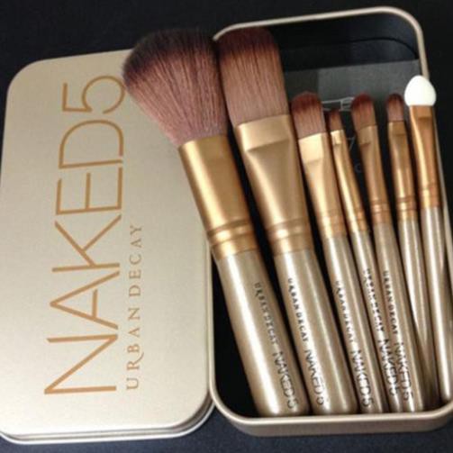 Bộ cọ trang điểm Naked 5 (thương hiệu Mỹ) với thiết kế nhỏ gọn, xinh xắn, nhưng không kém phần hiệu quả với 7 cây cọ đủ sức đáp ứng nhu cầu trang điểm của chị em phụ nữ mọi lúc mọi nơi. – Đầu cọ được làm bằng lông cước cao cấp, mềm mịn và bám phấn tốt hơn hẳn cọ thông thường, tạo nên hiệu quả tối ưu khi trang điểm. – Cán cọ cứng cáp, vừa tay cầm, dễ dàng trong mọi thao tác đánh nền, đánh phấn phủ, má hồng, bầu mắt, kẻ viền môi, viền mắt… – Thiết kế hộp đựng sang trọng, kích thước chỉ tầm 7cm, rất tiện lợi mang theo đi làm, du lịch hay đi học … Bộ cọ 7 cây Naked 5 bao gồm: + Cọ má hồng + Cọ kem nền: Giúp bạn trang điểm nền đẹp và hoàn hảo hơn, ít bị hao kem như xài mút + 2 cọ phấn mắt vừa và nhỏ + Cọ vẽ son môi + Cọ kẻ viền mắt (hoặc vẽ bột mày) + Cọ mút tán phấn mắt (hoặc phủ nhũ kim tuyến)