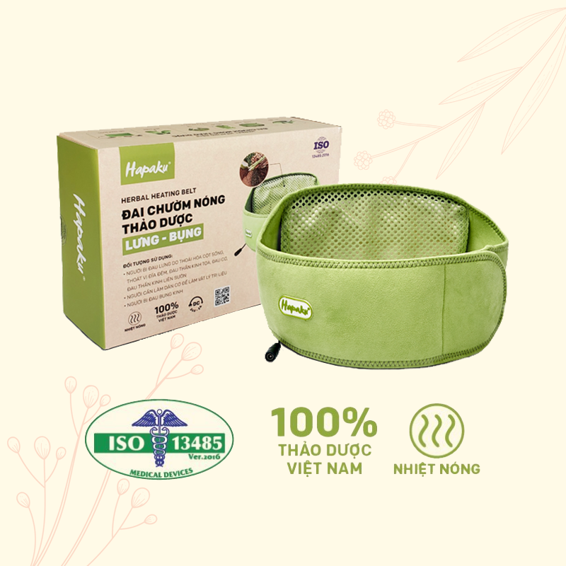 Bộ sản phẩm Bộ đai chườm nóng thảo dược giảm đau lưng bụng dùng điện – Hapaku Thương hiệu: Hapaku.