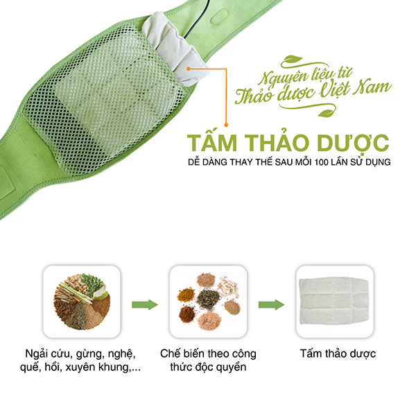 Làm nóng nhanh bằng cách cắm điện Qua bộ chuyển nguồn dòng điện đầu ra chỉ 12v nên tuyệt đối an toàn Nhanh chóng xoa dịu cơn đau mỏi vùng lưng, hông, dọc cột sống do tuổi tác, thoái hóa, thoát vị đĩa đệm Tăng tuần hoàn máu, lưu thông khí huyết, mang lại cảm giác thoải mái, dễ chịu cho cơ thể Hương thơm nhẹ dễ chịu của thảo dược giúp giải tỏa căng thẳng, thư giãn tinh thần, mang lại giấc ngủ ngon và sâu giấc hơn Vệ sinh đai thuận tiện, dễ dàng GIỚI THIỆU CHUNG: – Sản phẩm sử dụng nguyên liệu thảo dược và sản xuất tại Việt Nam. – Trong bộ đai chườm đã có sẵn một tấm thảo dược, khách hàng chỉ cần đeo đai chườm vào lưng rồi cắm điện là dùng được. – Đai chườm đã có sẵn bộ chuyển nguồn nên điện ra chỉ 12v, dòng điện 1 chiều, tuyệt đối an toàn. – Đi kèm sản phẩm sẽ có thiết bị điều chỉnh nhiệt độ theo 3 mức từ thấp, trung bình, cao, có chế độ tự động ngắt điện sau 60 phút kể từ thời gian cắm điện. – Các thiết bị điện được đổi mới trong vòng 6 tháng nếu xảy ra trục trặc do lỗi kỹ thuật của nhà sản xuất, bảo trì trọn đời. NGUYÊN LÝ – Theo Đông Y, nếu kết hợp liệu pháp chườm nóng cùng các tinh chất thảo dược tự nhiên sẽ có tác động trực tiếp vào các huyệt trên cơ thể, giúp đả thông khí huyết, tăng cường tuần hoàn máu, đưa máu (“dinh dưỡng”) đến các khớp và cơ quanh khớp giúp giảm đau nhanh chóng. – Theo Ts. Brain King – ĐH London: “Chườm nóng làm giảm cơn đau nhờ tác động lên một số bộ phận nhận cảm nhiệt như các loại thuốc giảm đau”. – Túi chườm thảo dược Hapaku ra đời dựa trên sự kết hợp kiến thức y học truyền thống với phương pháp làm nóng hiện đại, tiện dụng để mang đến cho mọi người thêm một phương pháp mới trong việc xử lý tình trạng đau mỏi lưng, vai gáy cổ, khớp… CÔNG DỤNG CHÍNH – Giảm đau, giảm co thắt trong các chứng bệnh mãn tính như đau thắt lưng, đau thần kinh tọa, thần kinh liên sườn, xương khớp, đau bụng kinh – Tăng tuần hoàn máu đến các vùng cơ bị chèn ép dây thần kinh, lưu thông khí huyết – Thư giãn, giảm mệt mỏi, căng thẳng, giúp ngủ ngon và sâu giấc hơn – Sức nóng từ túi chườm giúp toát mồ hôi, giải độc cơ thể THỜI HẠN SỬ DỤNG – Đai chườm có tuổi thọ trên 3 năm – Tấm thảo dược bên trong dùng được 100-120 lần, thay thế dễ dàng. SẢN XUẤT TẠI VIỆT NAM Sản phẩm được nghiên cứu và giám sát sản xuất bởi các Bác sĩ Đông y, Cơ xương khớp, Dược của Viện TDTT Việt Nam, Viện YHCT Tw, viện 354… Túi chườm thảo dược giúp giảm đau, thư giãn, phục hồi sức khỏe, là lựa chọn của nhiều anh/chị vì đây món quà ý nghĩa cho bố mẹ, những người thân yêu <3