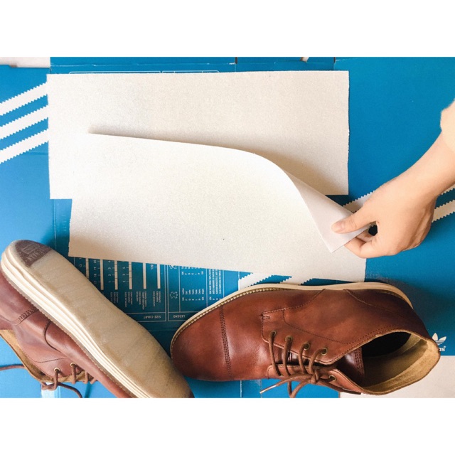 ✅Miếng dán bảo vệ đế giày khổ lớn , dán được hầu hết các kích cỡ giày ( 35cmx 15cm từng miếng ) ✅Hàng nhập khẩu từ Mỹ, chuyên sĩ Sole dán đế toàn quốc. ✅Ở đâu rẻ hơn mình hoàn tiền ⚠️⚠️⚠️Bản mới cải tiến với công nghệ chống trược hoàn hảo, ôm sát vào giày hơn từ Mỹ _____________________ _____________________ __________________ Bước 1: cắt miếng dán theo form giầy Bước 2: dán cố định lên đế Bước 3: dùng súng hoặc máy sấy tóc hơ nóng để keo chảy ra và bám chặt vào đế, cắt phàn dư và để keo khô ít nhất 3 tiếng trước khi sử dụng. Lưu ý: Chọn kích thước phù hợp để tiết kiệm hơn bạn nha ^^ – [Dài x rộng] x số miếng