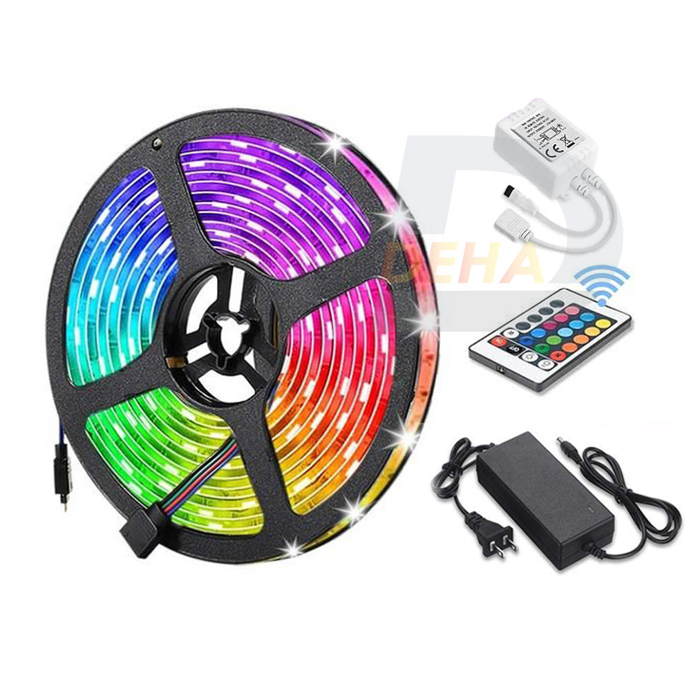 Bộ sản phẩm Bộ đèn led dây dán 5050 đổi nhiều màu RGB bằng điều khiển phủ silicon chống nước, có sẵn keo dán trang trí bàn làm việc, tường thạch cao, ô tô Thương hiệu: DEHA.