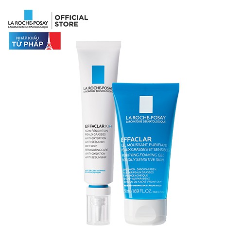 Bộ sản phẩm: Bộ đôi kem dưỡng giảm mụn đầu đen La Roche-Posay Effaclar K+ 40ml và Gel rửa mặt cho da mụn 50ml.