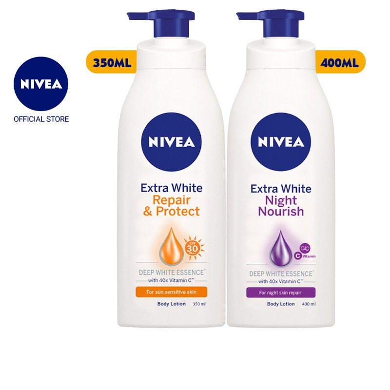 Bộ sản phẩm: Bộ đôi Sữa dưỡng thể dưỡng trắng da ngày & đêm NIVEA (Ngày 350ml & Đêm 400ml – 88311+88126).
