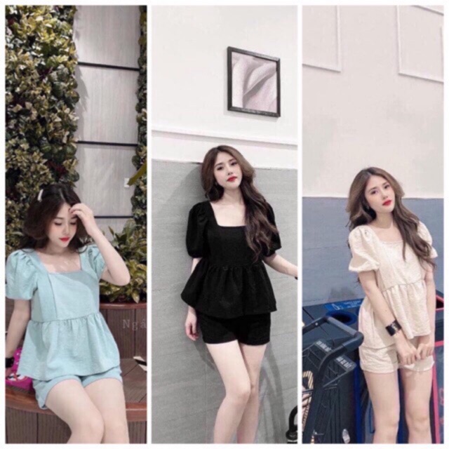 ☑Set đũi áo babydoll cổ vuông tay bồng quần đùi ❤️❤️
