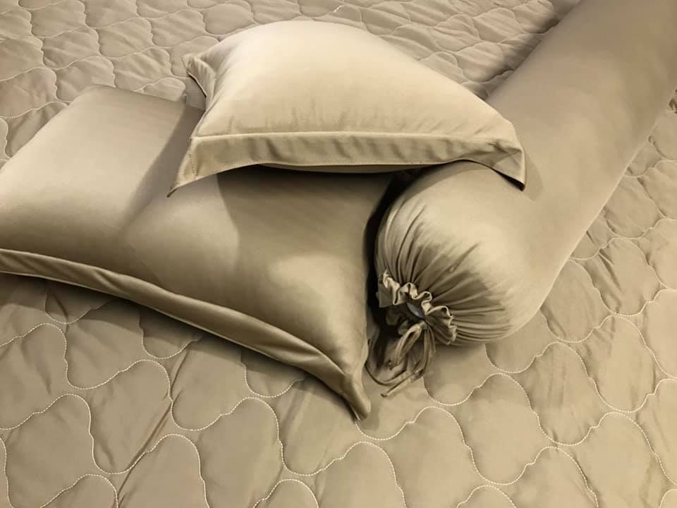 Sản phẩm gồm: 1 ga + 2 nằm + 1 ôm Chất liệu: THUN HÀN QUỐC cao cấp, mát lạnh, mềm mịn tạo sự thoải mái, êm dịu cho người dùng. Thấm hút tốt, không ra màu, không xù lông, giặt máy thoải mái Gồm: + 1 grap chun theo kích thước 1m2x2m,1m4x2m,1m6x2m,1m8x2m + 2 vỏ gối nằm 40x60cm + 1 vỏ gối ôm 35x100cm Loại cao 2 tấc dành cho nệm cao dưới 15cm, loại cao 3 tấc dành cho nệm cao dưới 25cm
