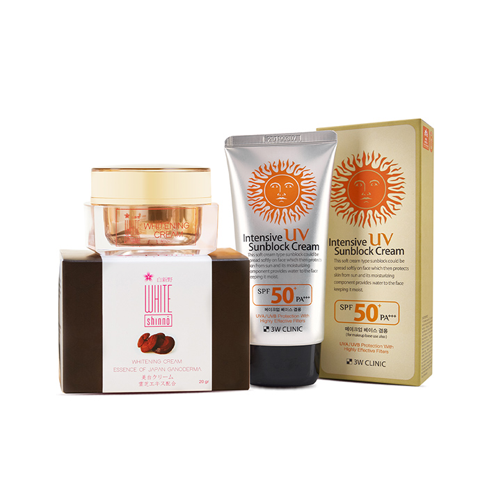 Bộ sản phẩm Bộ kem mờ nám da White Shinno Nhật Bản và kem chống nắng 3W Clinic Thương hiệu: White Shinno.
