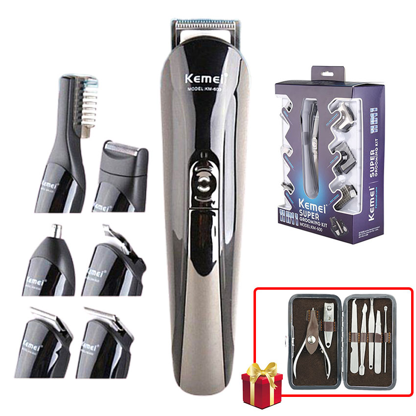 Bộ sản phẩm Bộ kit tông đơ đa năng 6in1 KEMEI KM-600 chuyên dùng để cắt tóc, chấn viền, cạo râu, tỉa lông mũi, cạo lông mày… kèm đế cất giữ tiện lợi Thương hiệu: Kemei.