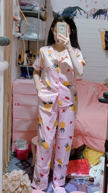 Bộ sản phẩm: BỘ LỤA GẤM TAY NGẮN QUẦN DÀI.