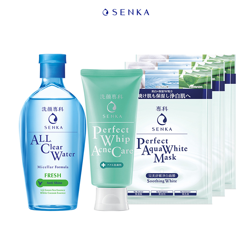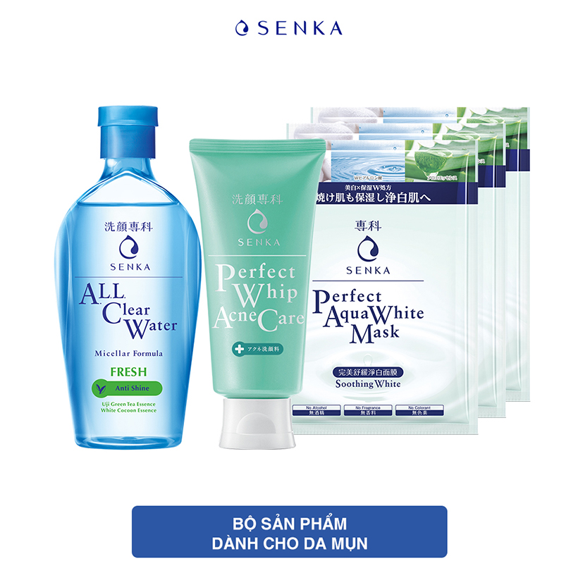 Bộ sản phẩm Bộ sản phẩm dành cho da mụn Senka (A.L.L Clear Water Fresh 230ml+SRM Acne Care 100g+Mặt nạ 25mlx3) _95121, Thương hiệu Senka Xuất xứ thương hiệu Nhật Bản Xuất xứ Nhật Bản SKU 6530893240619.