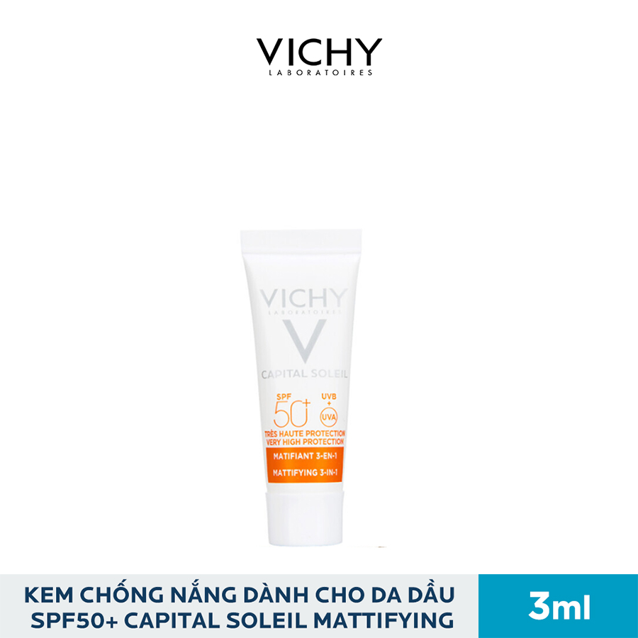 Hình ảnh sản phẩm có thể thay đổi theo từng đợt nhập Làm dịu và cấp ẩm tức thì Phục hồi da chuyên sâu Giúp da căng mịn Bộ Sản Phẩm Serum Khoáng Phục Hồi Chuyên Sâu VICHY Mineral 89 Bộ sản phẩm bao gồm: – 01 x Xịt khoáng dưỡng da Vichy Mineralizing Thermal Water 50ml – 01 x Kem Chống Nắng Dành Cho Da Dầu Mụn, Giảm Các Dấu Hiệu Lão Hóa Và Kiềm Soát Bóng Dầu Vichy Spf50+ Capital Soleil Mattifying 3-in-1 3ml – 01 x Dưỡng Chất (Serum) Khoáng núi lửa cô đặc Vichy Mineral 89 15ml Thông tin chi tiết: 1. Xịt Khoáng Dưỡng Da Vichy Mineralizing Thermal Water 50ml được làm giàu tự nhiên với 15 khoáng chất quý hiếm nước khoáng Vichy Thermal Spa đã được công nhận bởi tác dụng làm dịu, củng cố và làm đẹp da tuyệt vời của nó, được kiểm chứng bởi 34 thí nghệm trên hơn 600 người thuộc mọi loại da, thậm chí với làn da nhạy cảm nhất và dưới sự giám sát của chuyên gia da liễu. Hướng dẫn sử dụng: – Xịt khắp mặt – Vỗ nhẹ – Thấm khô, có thể sử dụng nhiều lần trong ngày 2. Kem Chống Nắng Dành Cho Da Dầu Mụn, Giảm Các Dấu Hiệu Lão Hóa Và Kiềm Soát Bóng Dầu Vichy Spf50+ Capital Soleil Mattifying 3-in-1 là kem chống nắng dành cho da dầu giúp kiểm soát bóng nhờn và bảo vệ da trước tác hại từ ánh nắng & ô nhiễm, ngăn chặn các tác nhân gây lão hóa sớm. Sản phẩm có công thức chống thấm nước thích hợp dùng hàng ngày và cả những hoạt động ngoài trời, để bạn luôn tự tin tỏa sáng. Công dụng: – Kết cấu dạng kem gel, thẩm thấu tức thì, mang lại cảm giác khô thoáng, không để lại vệt trắng. – Kiểm soát bã nhờn & mồ hôi giúp mang đến một cảm giác “sạch” cho làn da đến 9h. – Bảo vệ da trước những tác hại từ ánh nắng & ô nhiễm: lão hóa sớm, đốm nâu, kích ứng ánh nắng. – Độ chống nắng cao nhất SPF 50+ bảo vệ da tối ưu dưới ánh nắng. – Chống nắng phổ rộng với nhiều màng lọc tia UV bảo vệ da trước ngay cả tia UVA dài. Hướng dẫn sử dụng: – Thoa kem trước khi tiếp xúc với ánh nắng 20 phút. – Lấy một lượng sản phẩm vừa đủ và chấm 5 điểm trên mặt (trán, mũi, cằm và hai bên má) sau đó thoa sản phẩm theo chiều từ trong ra ngoài và trên xuống dưới. 3. Vichy Mineral 89 15ml chứa đến 89% khoáng Vichy cô đặc với 15 khoáng chất quý báu kết hợp hoàn hảo cùng Hyaluronic acid từ lòng núi lửa giúp củng cố hàng rào bảo vệ da, tái tạo và phục hồi, cho da mịn màng, căng mượt và tràn đầy sức sống. Sau một tuần sử dụng, da dần lấy độ căng mịn, rạng rỡ, lỗ chân lông thu nhỏ lại, các dấu hiệu lão hóa cũng được cải thiện. Hướng dẫn sử dụng: – Sử dụng sáng và tối, sau bước làm sạch và làm dịu da cùng nước khoáng Vichy. – Lấy một lượng sản phẩm vừa đủ cỡ hạt đậu, chấm đều lên 5 điểm: trán, mũi, cằm và 2 bên má rồi nhẹ nhàng massage theo hình tròn, hướng lên trên. – Có thể kết hợp sử dụng thêm các dưỡng chất cùng dòng nếu muốn. Thông tin thương hiệu: Vichy là thương hiệu nổi tiếng của Pháp được thành lập vào năm 1931 tại thành phố cùng tên Vichy bởi bác sĩ da liễu Haller và nhà kinh doanh Guerin. Với nhiều năm kinh nghiệm, viện nghiên cứu Vichy đã sáng tạo ra nhiều phương thức mới và hiệu quả để chăm sóc sức khỏe làn da. Tất cả sản phẩm Vichy được kiểm nghiệm một cách toàn diện và khắt khe dưới sự giám sát của chuyên gia da liễu về độ an toàn và dịu nhẹ cho da, đặc biệt đối với làn da nhạy cảm. Ngoài ra, các sản phẩm của Vichy đã được chứng minh không gây dị ứng, không gây mụn, chứa nước khoáng Vichy giàu khoáng chất có tác dụng củng cố và tăng cường tái tạo da.