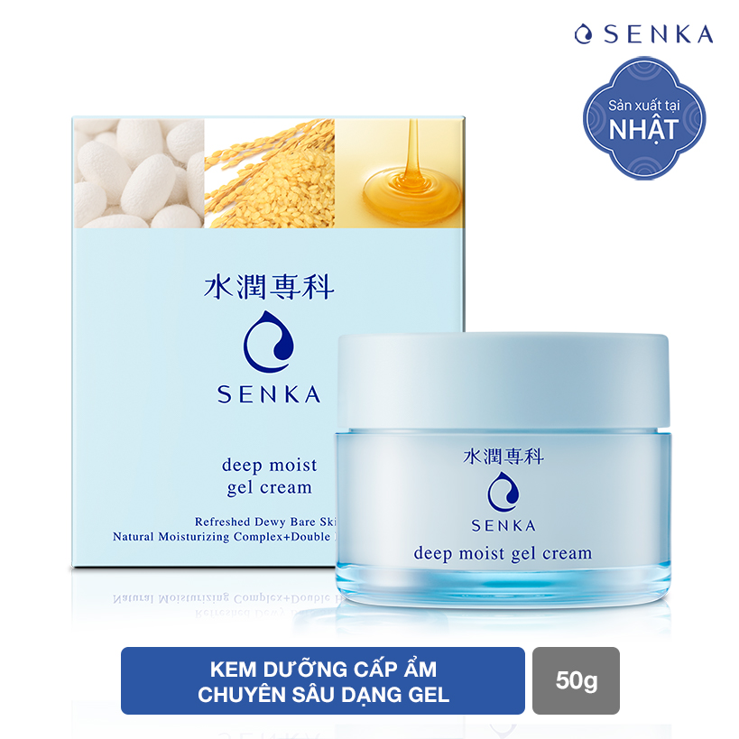 Cấp nước và giữ ẩm cho từng tầng da Làm sạch bã nhờn, bụi bẩn sâu bên trong lỗ chân lông Cung cấp độ ẩm cho da ẩm mịn và mềm mượt, đàn hồi và tươi tắn. Khóa ẩm tối ưu vừa lưu giữ các dưỡng chất từ các bước chăm sóc da trước đó Sản phẩm phù hợp với tất cả loại da Bộ sản phẩm bao gồm: 01 x Gel rửa mặt dịu nhẹ Senka Perfect Gel Gentle Wash 01 x Kem Dưỡng Cấp Ẩm Chuyên Sâu dạng Gel Senka Deep Moist Gel Cream 50G THÔNG TIN CHI TIẾT 1. Gel rửa mặt dịu nhẹ Senka Perfect Gel Gentle Wash giúp nhẹ nhàng làm sạch bã nhờn, bụi bẩn sâu bên trong lỗ chân lông, cho da sạch thoáng, sáng mịn rạng rỡ. Thành phần: – Thành phần dịu nhẹ, ít a-xít, phù hợp sử dụng vào buổi sáng cho tất cả loại da – Không gây kích ứng, Không chất tạo màu. – Chiết xuất Tơ Tằm Trắng và gấp đôi Hyaluronic Acid dưỡng ẩm – Hương Cam chanh tươi mát mang lại cảm giác sảng khoái, mát mẻ – Rửa sạch bằng nước hoặc lau khô đều được Công dụng: – Gel rửa mặt dịu nhẹ giàu dưỡng chất phù hợp cho da khô và da nhạy cảm. – Gel rửa mặt giúp nhẹ nhàng làm sạch bã nhờn, bụi bẩn sâu bên trong lỗ chân lông cho da sạch thoáng, sáng rạng rỡ. Đồng thời cung cấp độ ẩm cho da ẩm mịn và mềm mượt, đàn hồi và tươi tắn. Loại da phù hợp: – Sản phẩm phù hợp với tất cả loại da, đặc biệt là da khô và da nhạy cảm – Thích hợp sử dụng vào buổi sáng Hưỡng dẫn sử dụng: – Lấy một lượng sản phẩm vừa đủ ra lòng bàn tay. – Mát-xa da mặt theo chuyển động tròn. Rửa lại thật sạch với nước hoặc lau sạch da với bông cotton. 2. Kem Dưỡng Cấp Ẩm Chuyên Sâu dạng Gel Senka Deep Moist Gel Cream 50G giúp tạo thành “mặt nạ nước trong suốt” – vừa khóa ẩm tối ưu vừa giữ các dưỡng chất từ các bước chăm sóc da trước đó. Dừng như mặt nạ ngủ. Thành phần: – Công nghệ chuyển hóa Gel – nước: Chất gel trong mướt chuyển hóa thành các phân tử nước nhỏ, dễ dàng thấm sâu vào các lớp biểu bì, cấp nước và giữ ẩm cho từng tầng da, đem lại làn da mướt mịn như nhung. – Công nghệ “Natu-ence” độc quyền từ Shiseido giúp nâng cao hiệu quả của các thành phần dưỡng da tự nhiên từ Nhật Bản (Collagen, Tơ Tằm Trắng, Cám Gạo, Mật Ong, Chiết xuất Chestnut Rose) – Công nghệ Aqua-in-pool độc quyền từ Shiseido giúp bảo vệ màng ẩm tự nhiên và tăng cường hiệu quả cấp ẩm cho da – Không Cồn – Không Mùi – Không Màu – Dịu nhẹ – Không kích ứng Công dụng: – Dùng như mặt nạ ngủ: Giúp tạo thành “mặt nạ nước trong suốt” – vừa khóa ẩm tối ưu vừa lưu giữ các dưỡng chất từ các bước chăm sóc da trước đó. Loại da phù hợp: – Sản phẩm phù hợp với tất cả loại da Hướng dẫn sử dụng: – Lấy một lượng sản phẩm vừa đủ lên lòng bàn tay và thoa đều khắp mặt & cổ. – Sử dụng hằng ngày cho làn da căng mịn, ẩm mượt, đàn hồi và trong mướt. – Đối với trường hợp sử dụng như mặt nạ ngủ, lấy một lượng gấp đôi tương đương kích thước 1 đồng xu, thoa đều khắp mặt và cổ. Sử dụng 2-3 lần/tuần nhằm mang lại hiệu quả tối ưu. Lưu ý: – Trong trường hợp tiếp xúc với mắt, ngay lập tức rửa lại với nước. – Đặt xa tầm tay trẻ em. – Không sử dụng cho vùng da bị tổn thương. – Ngưng sử dụng ngay khi có biểu hiện kích ứng và hỏi ý kiến bác sĩ. Hướng dẫn bảo quản: – Tránh nơi có nhiệt độ cao hoặc tiếp xúc trực tiếp với ánh nắng mặt trời. – Tránh để nước rơi vào gel rửa mặt. Ngày sản xuất: Xem NSX trên bao bì sản phẩm (Ngày/Tháng/Năm) Hạn sử dụng: 3 năm kể từ NSX Xuất xứ thương hiệu: Nhật Bản Nơi sản xuất: Nhật Bản THÔNG TIN THƯƠNG HIỆU Ra đời năm 2002 tại Nhật Bản, nhãn hiệu Senka thừa hưởng lịch sử 140 năm của Tập đoàn Shiseido để mang đến những sản phẩm dưỡng da hiệu quả và an toàn với làn da phụ nữ châu Á. Với sản phẩm đại diện Senka Perfect Whip đứng đầu thị trường sữa rửa mặt Nhật Bản trong 7 năm liền (từ 2008 đến 2015), Senka mong muốn chăm sóc những người phụ nữ bận rộn một cách hiệu quả và tinh tế hơn.