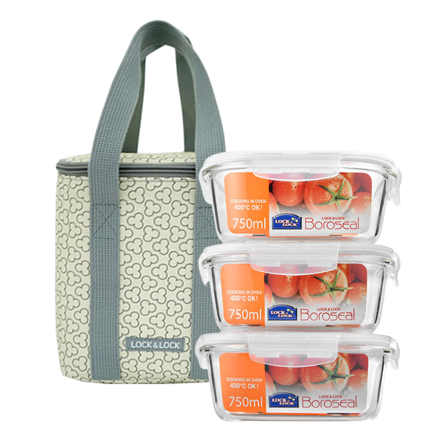 Bộ sản phẩm Bộ Túi Hộp Cơm Thủy Tinh Lock&Lock 4EA LLG224I3 (750ml) Thương hiệu: Lock&Lock.