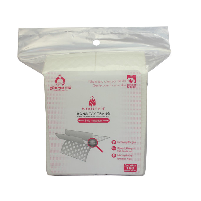 Bộ sản phẩm Bông tẩy trang 180M có hạt massage Thương hiệu: Bông Bạch Tuyết.