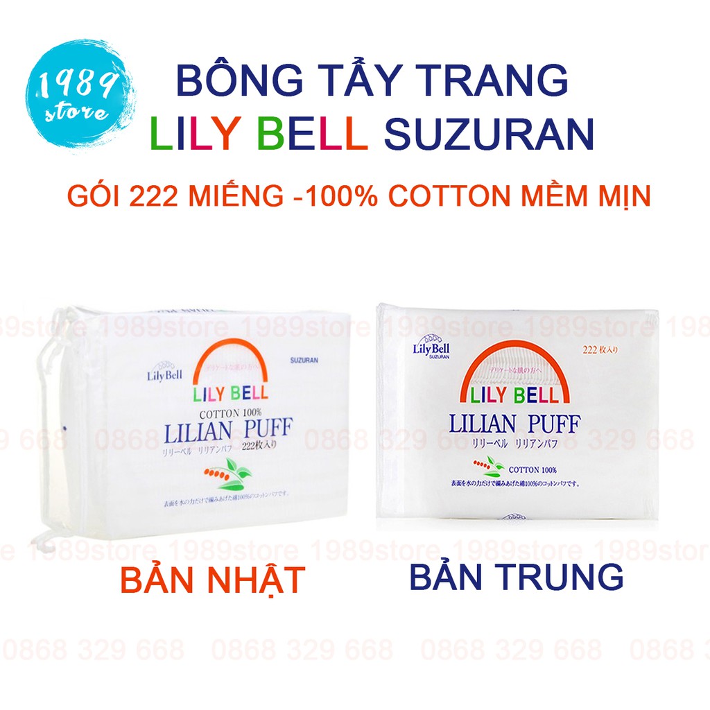 – Lily Bell là 1 thương hiệu của tập đoàn dệt bông uy tín của Nhật – Suzuran. Được thành lập từ năm 1832. Tập đoàn này cũng có đặt nhà máy tại Việt Nam, tuy nhiên chỉ sản xuất khẩu trang và khăn sữa em bé – Tháng 8/1990, hãng thành lập chi nhánh Thượng Hải và khai trương cửa hàng chính thức 1 năm sau đó. – Bông tẩy trang 100% cotton mềm mịn và cực kỳ mỏng. Mỏng nhưng dai và không hề bị xơ bông, sản xuất tại Trung Quốc theo tiêu chuẩn Nhật Bản. Bao bì của bông nội địa Nhật và nội địa Trung có khác biệt 1 xíu. – Thiết kế túi zip tiện lợi. 1 túi có 222 miếng