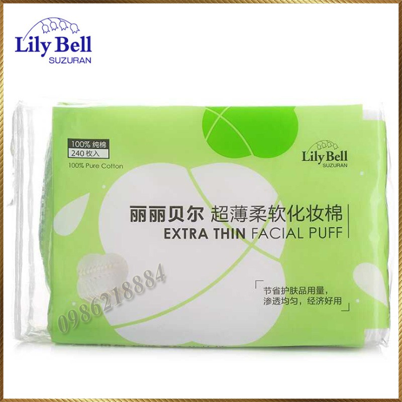 Bộ sản phẩm: Bông tẩy trang Lily Bell vỏ xanh Extra Thin 240 miếng LBE24.