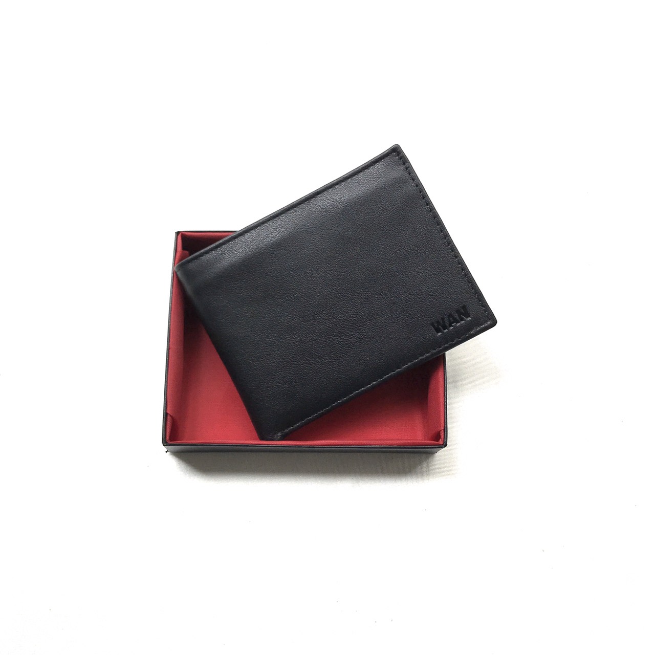 Bộ sản phẩm Bóp nam / Ví nam WAN da bò thật kiểu dáng ngang cổ điển sang trọng W04 màu đen (Full box) Thương hiệu: WAN.