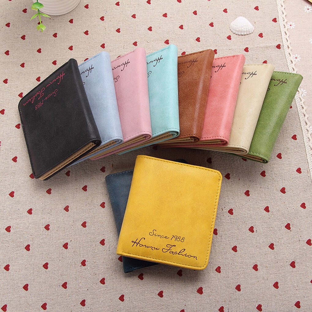 Mô tả sản phẩm: chất liệu:da giả tổng hợp với vải polyester bên trong. Kiểu dáng:phong cách Hàn Quốc,gập. Kích thước:10*1*9CM(Chiều dài*độ sâu*độ rộng). Chất liệu sản phẩm:da giả tổng hợp Màu sản phẩm:vàng/đen/hồng/xanh lá/nâu/màu xanh dương đậm/xanh da trời /màu quả mơ/màu dưa hấu. Gói hàng gồm:1*Ví