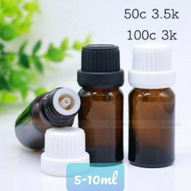Chai lọ đựng tinh dầu nhỏ giọt nắp đen 5ml/10ml Chai lọ đựng tinh dầu nhỏ giọt nắp đen 5ml/10ml Thân trong và nâu Nắp đen có nút trong nhỏ giọt.