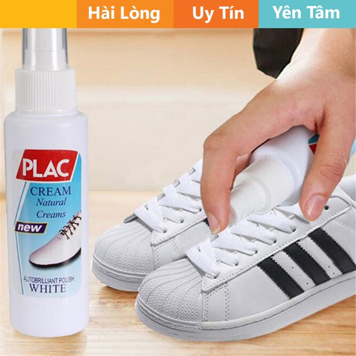 Chai tẩy trắng giày dép túi xách Chai tẩy trắng giày dép túi xách mang đến cho bạn giải pháp đánh sạch vết bẩn , làm trắng lại đai giày hay chiếc túi xách sang trọng của bạn . Giờ đây với những vật dụng trắng tinh , bạn hoàn toàn tự tin đẻ phối những chiếc giày , dép , túi xách với những bộ đồ mình đang mặc. Chai tẩy trắng giày dép túi xách Thông tin sản phẩm chai xịt tẩy trắng giày dép túi xách – Kích thước chai: 13x5x4cm; – Thành phần: nước tinh khiết, Cilicate Flour, Glycerin… giúp tẩy trắng mà vẫn giữ an toàn cho da giày, da túi xách; – Hàng tiện dụng, dễ mang đi xa. – Sản phẩm là phụ kiện cần có cho mỗi gia đình hay dân văn phòng, dân thể thao. Hướng dẫn sử dụng chai xịt tẩy trắng Plac : – Đối với những đôi giày vải: + Bước 1: Dùng một chiếc bản chải giày sạch và khô chải sạch vết bẩn trên giày. + Bước 2: Dùng bản chải mềm thấm nước tẩy rửa rồi chà sát lên vết bẩn. + Bước 3: Phun chất bảo vệ vải lên giày để bảo vệ và không làm hư vải sau khi chà sát và sử dụng chất tẩy rửa. – Đối với giày cao su: + Bước 1: Dùng một miếng vải ẩm quấn quanh đầu ngón tay rồi lau đi bụi bẩn. + Bước 2: Cho xà phòng lên miếng vải và lau sạch lại bề mặt. + Bước 3: Dùng bàn chải cứng chà giày thật kỹ, rồi rửa sạch dưới vòi nước. – Đối với giày da lộn: + Bước 1: Dùng bàn chải làm sạch da lộn để chải đi những bụi bẩn, nên chải theo một hướng để đạt hiệu quả tốt nhất, nếu vết bẩn quá cứng thì bạn có thể sử dụng dao để loại bỏ nếu không chải sạch được. + Bước 2: Dùng chất bảo vệ da lộn để xịt lên đôi giày. Lưu ý không được sử dụng nước để tẩy rửa và làm sạch. – Đối với giày da màu trắng: + Bước 1: Dùng vải mềm lau sạch bề mặt bị bám bẩn. + Bước 2: Tháo dây giày và tiếp tục vệ sinh. + Bước 3: Chuẩn bị dung dịch để rửa bằng cách pha nước ấm với xà phòng hay nước rửa chén hoặc với bất kì một loại xà phòng rửa tay thông thường khác. + Bước 4: Dùng bàn chải nhẹ nhàng chải trên bề mặt và bên trong đôi giày, lưu ý là phải chà thật nhẹ nhàng vì da rất dễ bị sướt. + Bước 5: Dùng nước ấm rửa sạch. + Bước 6: Nhồi khăn giày vào trong đôi giày để hút nước rồi đem đi sấy. Lưu ý, thay khăn liên tục nếu chúng bị ướt. + Bước 7: Treo đôi giày để nó khô hẳn. dạng xịt