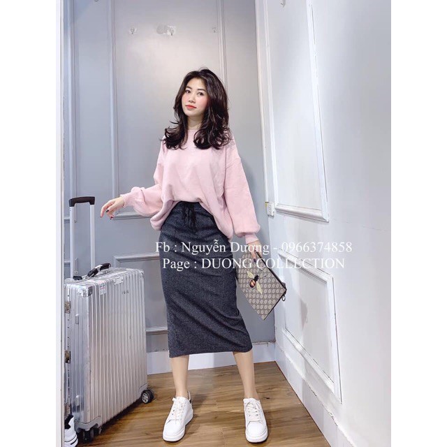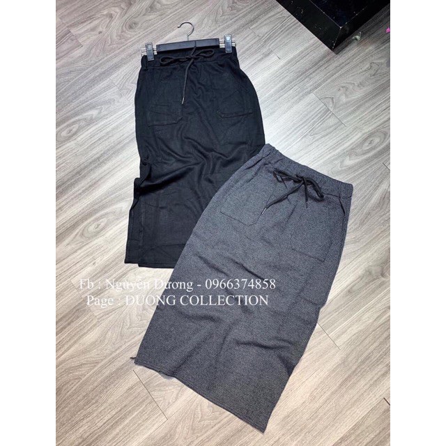 Bộ sản phẩm: Chân váy bút chì dạ tăm xẻ sườn 2 túi.