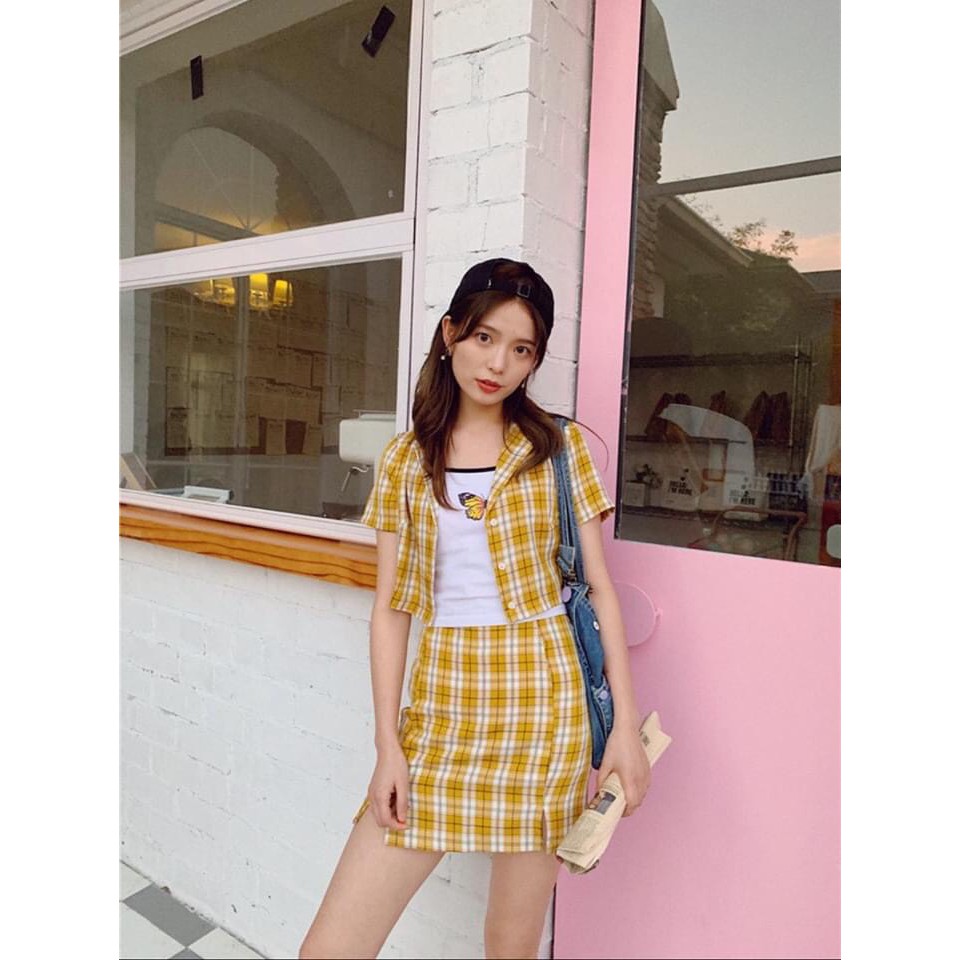 Bộ sản phẩm: Chân Váy Kẻ Ulzzang Nhiều Màu Ngắn Xẻ Đùi.