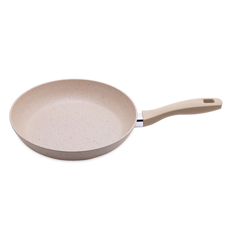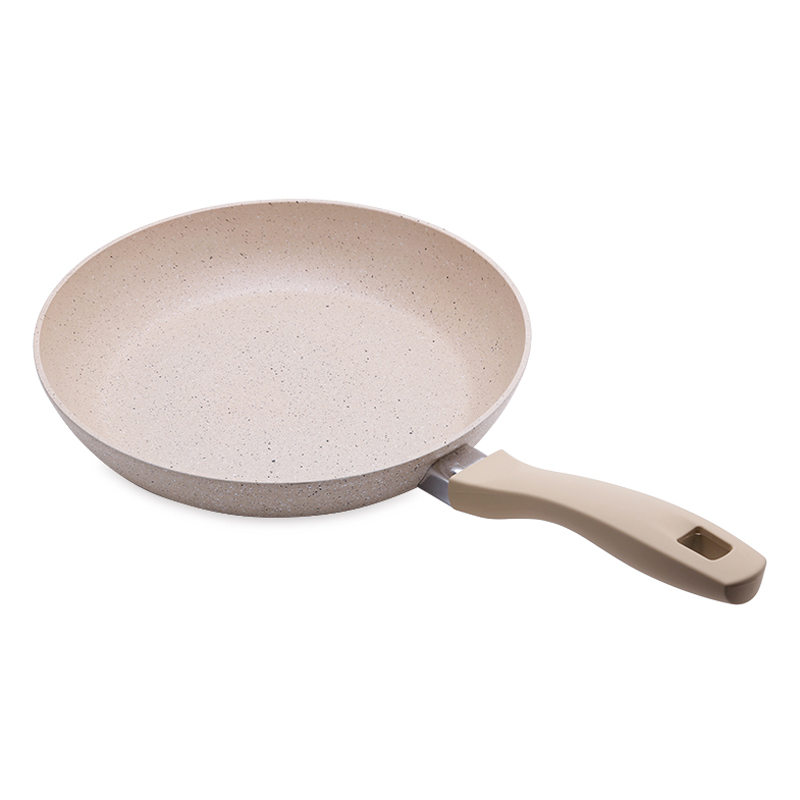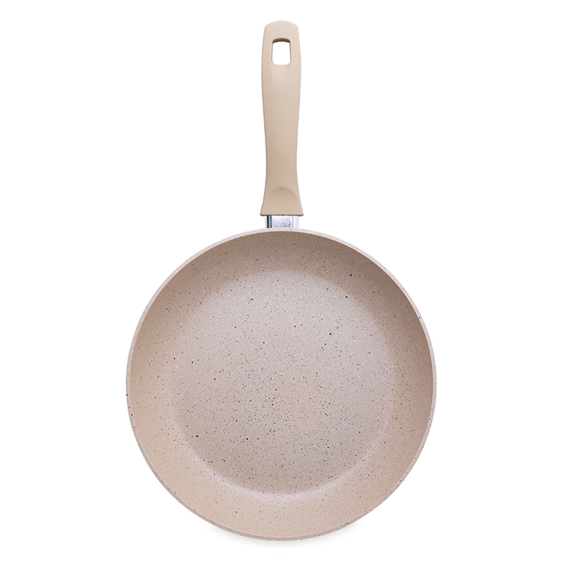 Nhôm hàm lượng 99.75% Phủ lớp vân đá chống dính Cán chảo làm từ nhựa Baketlite phủ silicone Sử dụng được trên bếp từ Chảo Vân Đá Cao Cấp Đáy Từ Charm Happycook – MAF-24 – 24cm được sản xuất theo công nghệ và thiết kế của Hàn Quốc, đảm bảo chất lượng và tính thẩm mỹ, mang đến cho không gian bếp của sự sang trọng và tiện dụng. Lòng chảo bằng hợp kim nhôm phủ lớp chống dính dẫn nhiệt nhanh, tỏa nhiệt đều làm thức ăn chín nhanh, không sợ bị cháy khét và rất an toàn cho người sử dụng. Với kích thước 24cm, sản phẩm dùng để chiên, xào với lượng lớn thực phẩm một cách nhanh chóng và dễ dàng, giúp các bạn tiết kiệm thời gian làm được nhiều việc khác. Mặt chảo chống dính bằng chất liệu hợp kim nhôm 99,97% bên trong phủ lớp vân đá chống dính độ bền cao, chống bám bẩn, dễ vệ sinh chùi rửa và an toàn sức khỏe người dùng. Tay cầm của chảo bằng nhựa cách nhiệt, chống nóng tốt, bạn có thể di chuyển chảo dễ dàng mà không sợ phỏng. Cuối tay cầm thiết kế một lỗ to, giúp treo chảo lên kệ bếp gọn gàng, rất tiện lợi. Đáy chảo phẳng, hấp thu nhiệt tốt, tỏa nhiệt đều, nấu chín thức ăn nhanh, tiết kiệm thời gian và điện năng. Màu kem sữa sang trọng, điểm tô thêm cho gian bếp nhà bạn. Sản phẩm thiết kế tiện dụng, có thể sử dụng nhiều loại bếp: bếp gas, bếp từ, bếp hồng ngoại.