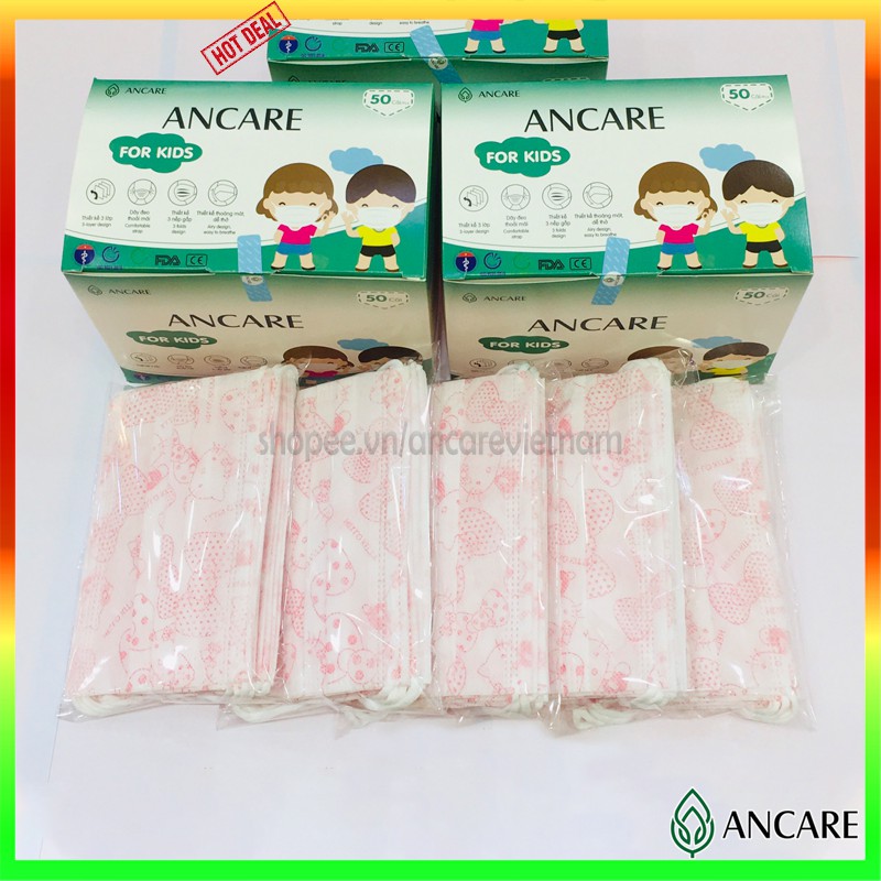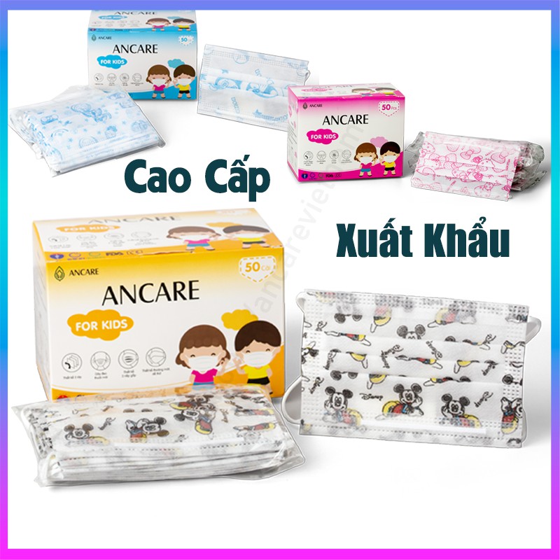 Bộ sản phẩm: Chính Hãng – Khẩu Trang Y Tế Cho Trẻ Em Hộp 50 Cái Ancare – Hàng Cao Cấp Xuất Khẩu, Hình In Ngộ Nghĩnh, Dễ Thương.