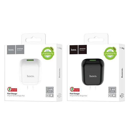Bộ sản phẩm Cốc sạc nhanh Hoco HK2 1 cổng sạc ra nguồn ra max 3.4A Chất liệu nhựa PC chất lượng cao chống cháy – Hàng chính hãng Thương hiệu: Hoco.