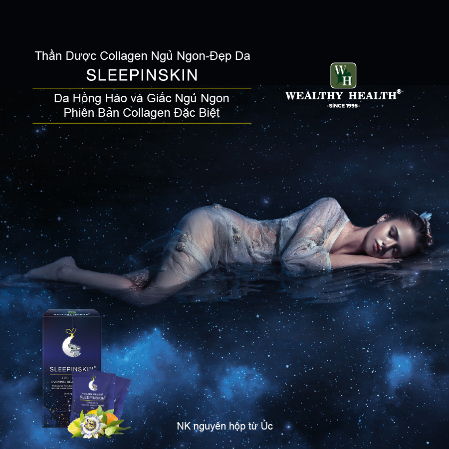 Collagen tác động kép cho bạn làn da trắng hồng, căng mịn và giấc ngủ ngon. Collagen thủy phân cao cấp tự nhiên từ cá biển sâu là collagen đắt đỏ bậc nhất và hiệu quả nhất giúp da căng mịn. Kết hợp với Vitamin C giúp hình thành Collagen tự nhiên và làm da trắng sáng. Chiết xuất thành phần tự nhiên từ lạc tiên và tía tô, giúp bạn ngủ ngon giấc, giúp đẹp da mà còn đẹp cả thần thái. Bổ sung canxi từ nguồn sữa tách béo thơm ngon của Úc -#Collagen_ tác_động_kép : #đẹp_ da và #ngủ_ngon , COLLAGEN PHIÊN BẢN ĐẶC BIỆT-ĐẸP DA ĐẸP CẢ THẦN THÁI -Dù cho bạn uống hay dùng nhiều sp dưỡng da nhưng nếu bạn ngủ không ngon giấc thì bạn cũng sẽ khó có làn da đẹp như mong đợi. -Sự thật là KO ngủ được hoặc ngủ KO ngon giấc sẽ dẫn đến: da sạm- da nhăn nheo-da lão hóa nhanh-da nám, mắt thâm-mắt quầng-nhăn, sức khỏe kém-mệt mỏi cả ngày. -Sau 25t là da bắt đầu lão hóa tự nhiên và cũng như môi trường -Collagen Sleepinskin-Collagen Sleep Beauty Elixir là sản phẩm Collagen tác động kép vừa cung cấp Collagen cao cấp mà còn giúp bạn ngủ ngon. -Vì vậy được gọi là : Thần dược “Collagen Ngủ Ngon-Đẹp Da Sleepinskin”-Giúp Tái Sinh Làn Da-Tăng Cường Sức Khỏe. -Đây không phải là Sp Collagen thuần túy mà là sản phẩm Collagen không những cung cấp Collagen tốt nhất, dưỡng chất cho da mà còn giúp ngủ ngon – đây là sản phẩm làm điên đảo chị em hiện nay. -Thần dược Collagen Ngủ Ngon Đẹp Da Sleepinskin được sản xuất bởi Cty Dược Wealthy Health uy tín tại Úc –sẽ giải quyết hết cho CE, với các thành phần đỉnh cao cho làn da và sức khỏe: -Collagen thủy phân của cá tự nhiên từ biển sâu đại dương được chiết xuất siêu nhỏ để dễ dàng hấp thụ trong lúc ngủ giúp cho làn da tự sản sinh collagen tự nhiên đã được kiểm chứng lâm sàn. Đây là nguồn collagen đắt đỏ nhất và hiệu quả nhất. -Vitamin C là thành phần chống Oxy mạnh không những giúp cho thúc đẩy quá trình sản sinh collagen tự nhiên mà còn giúp làn da căng sáng. Sự kết hợp của Collagen và Vitamin C trong cùng một sản phẩm là sự kết hợp hoàn hảo nhất và được nhiều chuyên gia nghiên cứu để cho làn da đẹp bất chấp thời gian. -Chiết xuất từ cây lạc tiên, cây bạc hà chanh (tía tô đất) : không những chứa thành phần Vitamin C tự nhiên , Carotene , Sod enzyme và một số thành phần tự nhiên khác giúp cho làn da tái sinh –tràn đầy sức sống và cũng như giúp ngủ ngon-relax sau một ngày làm việc mệt mỏi . -Được tăng cường canxi và dưỡng chất từ nguồn sữa tách béo thơm ngon của Úc, cũng như bổ sung khoáng chất như magie. Việc cung cấp dưỡng chất và khoáng chất trong lúc ngủ giúp cho giấc ngủ ngon và đầy dưỡng chất cho làn da căng mịn và sức khỏe dẻo dai mà không hề bị tăng cân như một số sp khác. -Sản phẩm được nhập khẩu nguyên hộp từ Úc và đã được cấp phép lưu hành tại Việt Nam. -Ai nên sử dụng sản phẩm: phụ nữ từ 25t trở lên bắt đầu nên bổ sung Collagen, ai bị da sạm-nám, da lão hóa –nhăn và chảy xệ, mắt thâm quầng, người hay mất ngủ- người mệt mỏi-trầm cảm và stress, Người muốn ngăn ngừa lão hóa sớm, hoặc ai không hài lòng với sp Collagen mình đang sử dụng. -Chỉ 1 gói pha với 150ml nước (ấm-lạnh tùy thích) trước khi ngủ khoảng 30-60 phút, – Cty TNHH TM và DV Tư Vấn M&C: nhập khẩu và phân phối độc quyền sản phẩm tại Việt Nam. ️***Uống thuốc ngủ thường xuyên ảnh hưởng đến sức khỏe và đồng hồ sinh học tự nhiên của cơ thể….Vì vậy thần dược Collagen Ngủ Ngon Sleepinskin Của Công Ty Wealthy Health-Úc là sản phẩm vừa giúp da đẹp-người khỏe mà còn giúp giấc ngủ àng uống càng đẹp -càng uống càng khỏe, được khuyên dùng lâu dài.