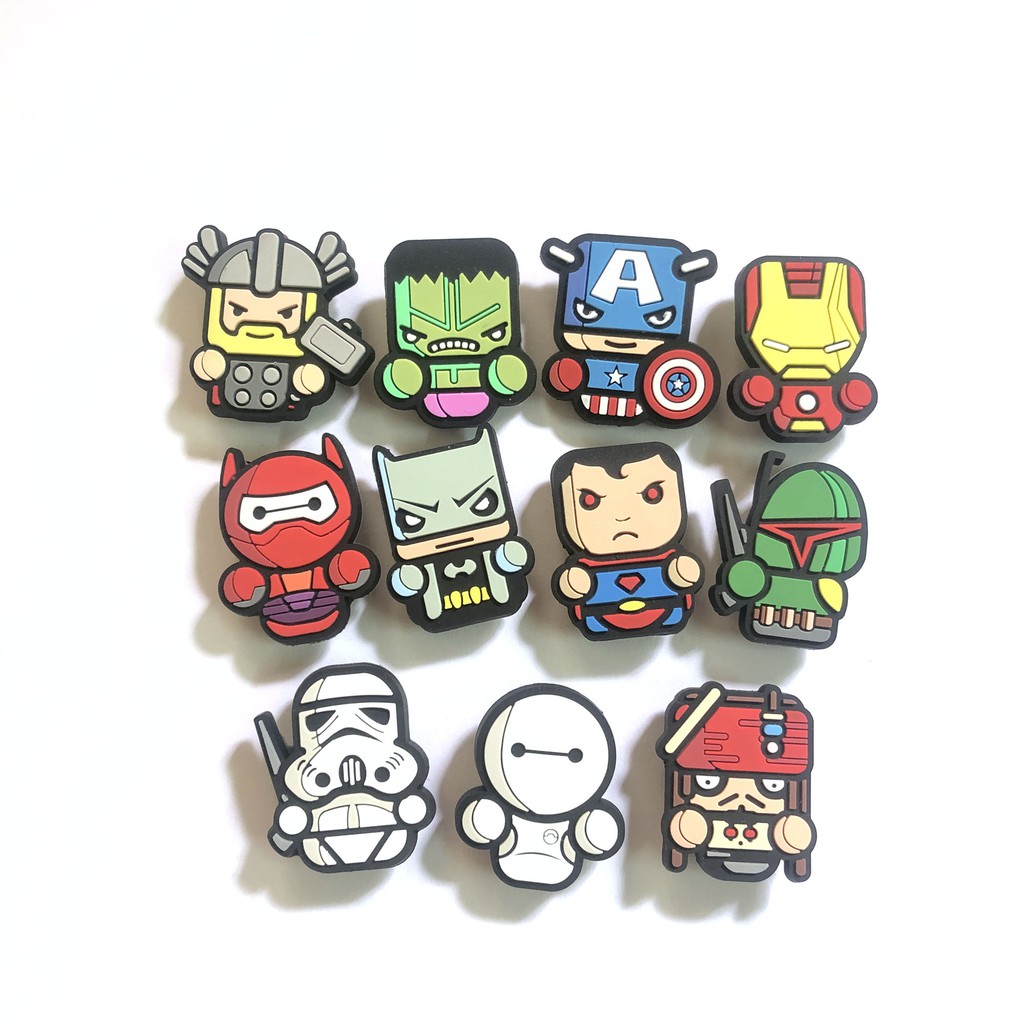 Bộ sản phẩm: Combo 11 cái Sticker / Jibbitz Nút Gắn Dép Siêu anh hùng, Marvel cho Crocs, Dép Sục.