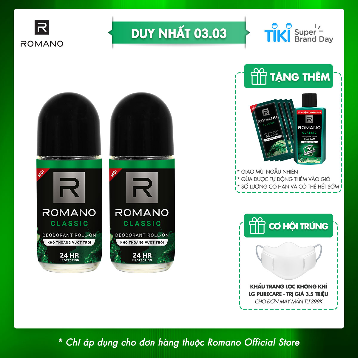 Bộ sản phẩm Combo 2 Lăn khử mùi Romano Classic kháng khuẩn & khô thoáng cả ngày 50ml*2 Thương hiệu: Romano.