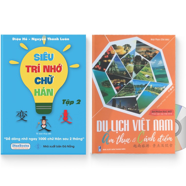 1. Combo 2: Siêu trí nhớ chữ Hán tập 02 + Du lịch Việt Nam – Ẩm thực và cảnh điểm + DVD quà tặng ebook
