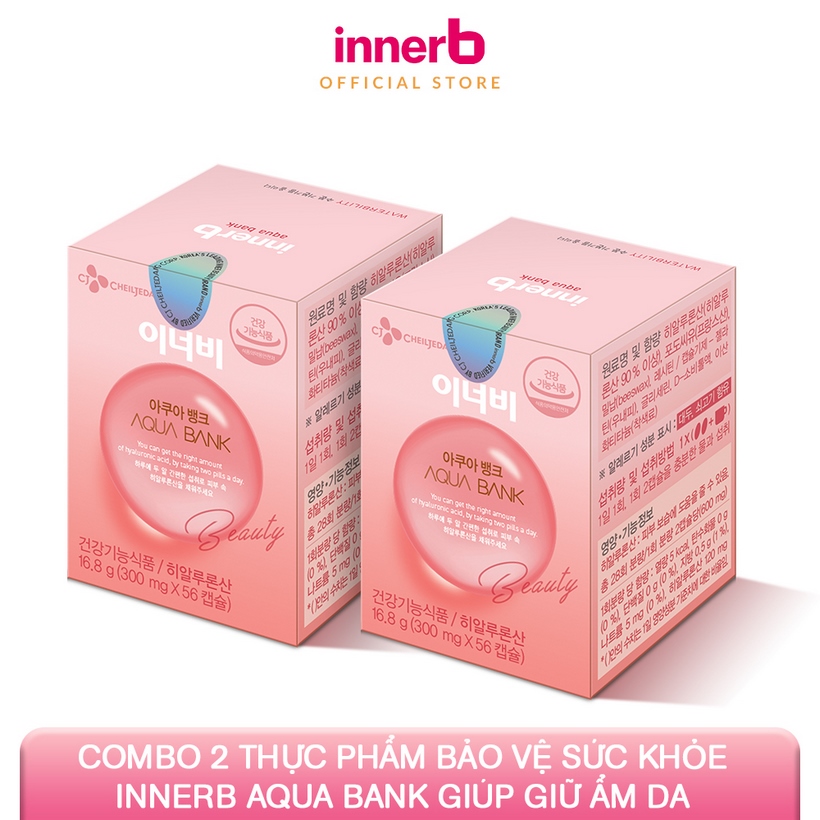 Bộ sản phẩm Combo 2 thực phẩm bảo vệ sức khỏe Innerb Aqua Bank (giúp giữ ẩm cho da từ Axit Hyaluronic) lọ 56 viên – Sản Phẩm Chính Hãng Thương hiệu: InnerB.