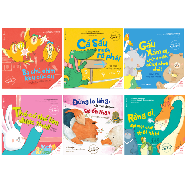 Công ty phát hành Thái Hà Tác giả Sirilug Puthakote Ngày xuất bản 01-2018 Kích thước 24 x 24 cm Loại bìa Bìa mềm Số trang 31 Bạn có lo lắng: Khi con đến trường con sẽ học được gì? Con sẽ ứng xử sao khi có 1 bạn nào đó tức giận hay ai đó làm con tức giận? Con sẽ làm gì khi các bạn trong lớp không cho con chơi cùng? Với những cuộc tranh luận với bạn thì con phải ứng xử như thế nào mới đúng? Quan trọng là con phải có những tư duy tích cực để và những kỹ năng sống để có thể suy nghĩ lạc quan và ứng phó với mọi hoàn cảnh một cách êm đẹp. Đó cũng là điều mà bố mẹ nào cũng trăn trở. Thế nhưng bố mẹ chỉ dừng và quan tâm đến mức độ là hỏi con học có vui không, lên trường có ai bắt nạt con không, lên đó con ăn gì, chơi với ai,…. Điều này đồng nghĩa với việc bố mẹ chỉ mới cho con mình 1 con cá tượng trưng cho sự quan tâm yêu thương chứ không cho con mình 1 cái cần câu và chỉ nó câu cá, đó là đồng nghĩa với việc bố mẹ dạy cho con những kỹ năng sống, những tư duy tích cực, suy nghĩ lạc quan. Nếu tôi sẽ giúp bạn được những điều này, bạn có quan tâm không? Bộ sách ehon song ngữ của một tác giả người Thái Lan, đã đưa những câu chuyện thú vị về những trường hợp mà các bạn mẫu giáo sẽ gặp khi đi nhà trẻ và cách giải quyết. Bố mẹ chỉ có việc đọc cho con nghe thôi, và con sẽ ứng xử tương tự cho mà xem. Cùng đi một vòng xem các bạn ấy có gì đặc biệt nhé! 3 điểm nổi bật của bộ sách này sẽ làm bạn quan tâm: Bộ sách là 1 dạng Ehon song ngữ Anh – Việt. Hình ảnh mình họa thú vị, kèm với nội dung giúp trẻ có được những tư duy và hành động đúng hơn. Phần cuối cuốn sách là những câu hỏi vì sao của các loài động vật, giúp bé hứng thú hơn để khám phá thế giới động vật đầy ý nghĩa. Bộ sách bao gồm 6 cuốn: – Sách Ehon – Ba chú chim kêu cúc cu – Sách Ehon – Đừng lo lắng, rồi mọi chuyện sẽ ổn thôi! – Sách Ehon – Gấu Xám ơi, chúng mình cùng chơi nhé! -Sách Ehon – Rồng ơi, đợi một chút thôi nhé! – Sách Ehon – Thỏ có thể làm được thôi! – Sách Ehon – Cá Sấu muốn rẽ phải
