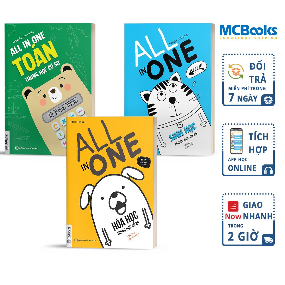 Combo “All In One Cấp THCS Môn Toán – Hóa – Sinh” là bộ sách tổng hợp các phần kiến thức tương ứng với nội dung sách giáo khoa THCS giúp các em nắm vững nội dung bài học và luyện tập thêm để nhớ luôn sau mỗi bài đó Combo bộ sách “All In One Cấp THCS” gồm có 3 cuốn All In One Cấp THCS Môn Toán THCS All In One Cấp THCS Môn Hóa THCS All In One Cấp THCS Môn Sinh THCS Bộ sách sẽ giúp bạn đang học trung học cơ sở – Tổng hợp toàn bộ kiến thức, nắm vững cách làm bài từng dạng, – Nắm vững kiến thức toán THCS, đặt nền tảng kiến thức vững chắc khi lên cấp 3. – Phần đáp án được giải thích cặn kẽ để bạn hiểu rõ vấn đề – Nắm được phương pháp giải đề thi nhanh chóng, chính xác. Nôi dung của cuốn sách 1. Cuốn sách “All In One Toán THCS” được trình bày theo từng lớp, từng chương, từng phần, từng mục. Toàn bộ nội dung sách được tóm tắt và đưa ra công thức toàn bộ kiến thức 1 cách ngắn gọn và đầy đủ nhất. Cuốn sách sẽ giúp các em Nội dung của cuốn sách – Tổng hợp toàn bộ kiến thức, nắm vững cách làm bài từng dạng, tăng khả năng ghi nhớ và áp dụng làm các bài tập tương tự. – Nắm vững kiến thức toán THCS, đặt nền tảng kiến thức vững chắc khi lên cấp 3. – Phần đáp án được giải thích cặn kẽ để bạn học có thể hiểu bản chất mà không gây khó khăn trong quá trình ôn luyện. – Nắm được phương pháp giải đề thi bậc THPT từ bài đơn giản đến phức tạp * Lớp 6: Gồm 5 chương, trong đó 3 chương đầu sẽ là nội dung kiến thức về số học và 2 chương sau nội dung về hình học. * Lớp 7: Gồm 5 chương, trong đó 3 chương về đại số và 2 chương về hình học. * Lớp 8: Gồm 7 chương, trong đó có 4 chương đại số và 3 chương hình học. * Lớp 9: Gồm 8 chương, trong đó có 5 chương đại số và 3 chương về hình học Thông tin chi tiết: – Công ty phát hành TKBOOKS – Tác giả Nhiều tác giả – Số trang 218 – Năm xuất bản 2018 – Nhà xuất bản Nhà Xuất Bản Hồng Đức – Hình thức Bìa mềm 2. Cuốn sách “All In One Hóa THCS” – Cuốn sách này dành cho học sinh trung học cơ sở lớp 8 và lớp 9 mới được làm quen với môn Hoá Học. Cuốn sách gồm 11 chủ đề quan trọng và chủ yếu trong Hóa THCS: Phi Kim, Kim loại, bản tuần hoàn, tính số mol… Nội dung của cuốn sách – Cuốn sách này dành cho học sinh trung học cơ sở, đặc biệt các em lớp 8 và lớp 9 mới được làm quen với môn Hoá Học. Cuốn sách gồm 11 chủ đề quan trọng và chủ yếu trong Hóa THCS: – Chất, nguyên chất, phân tử – Phản ứng hóa học – Mol – tính toán hóa học – Các loại hợp chất vô cơ – Dung dịch – Kim loại – Phi kim – Sơ lược về bảng tuần hoàn các nguyên tố hóa học Thông tin chi tiết: – Công ty phát hành TKBOOKS – Tác giả Nhiều tác giả – Số trang 218 – Năm xuất bản 2018 – Nhà xuất bản Nhà Xuất Bản Hồng Đức – Hình thức Bìa mềm 3. Cuốn sách “All In One Sinh THCS Nội dung của cuốn sách – Các phần kiến thức tương ứng với nội dung sách giáo khoa THCS và được biên soạn bám sát chuẩn kiến thức kĩ năng và nội dung chương trình. – Sinh học THCS, gồm 5 phần cơ bản: Sinh học thực vật, Sinh học động vật, Sinh học về cơ thể người, Di truyền và biến dị, Sinh vật và môi trường. Đây là các phần kiến thức trọng tâm giúp các em ôn luyện thi THPT Quốc Gia và thi học kỳ. Thông tin chi tiết: – Công ty phát hành TKBOOKS – Tác giả Nhiều tác giả – Số trang 218 – Năm xuất bản 2018 – Nhà xuất bản Nhà Xuất Bản Hồng Đức – Hình thức Bìa mềm #sachgiaoduc, #nhasachonline, #mcbooks,#mcbooks.sg, #sachonthi, #sachonluyen, #sachonxahoi, #lichsu, #dialy, #THPTQG