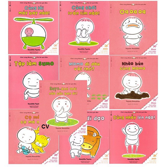 Combo Momo – Chú Bé Quả Đào (Bộ 10 Quyển) – Tái Bản Combo Momo – Chú Bé Quả Đào (Bộ 10 Quyển) Ehon là dạng sách tranh dành cho lứa tuổi từ 0 – 10. Ehon được ví như thực phẩm của tâm hồn, thói quen đọc ehon cho con nghe được ví như bữa ăn hàng ngày cha mẹ Nhật nuôi dưỡng tâm hồn và trí tuệ cho con. Đọc ehon chính là cách cha mẹ Nhật thể hiện thương, giúp con phát triển ngôn ngữ, trí tưởng tượng và nuôi dưỡng tâm hồn phong phú. Ehon có mặt trong tủ sách của mọi gia đình và ở thư viện trên khắp nước Nhật, là người bạn đồng hành với trẻ trong suốt những năm tháng ấu thơ. Chơi cùng Momo – Chú bé quả đào, bộ Ehon gồm 9 câu chuyện Cọ má, cọ má nào, Cùng lái máy bay nào, Cùng nhảy lên nào, Dắt bò đi dạo, Oa oa oa, Tập làm sumo, Suỵt khẽ thôi nào các bạn, Cùng chơi trốn tìm nào, Nhào bùn cùng Momo. Những câu chuyện dễ thương, hình ảnh ngộ nghĩnh kể lại những tình huống sự việc xoay quanh cậu bé Momo và những người bạn của mình. Tâm hồn trẻ được nuôi dưỡng thông qua tình yêu của cha mẹ, tình cảm với người thân, qua bài học đến từ những câu chuyện trong sách, qua tình huống ứng xử hàng ngà Truyện có tranh minh họa dành cho trẻ em chính là một trong những người bạn tốt nhất để dạy cho trẻ về tâm hồn và trí tưởng tượng. Đó cũng chính là lí do vì sao mà cha mẹ Nhật ai cũng đọc nó cho con mình. Còn những trò chơi trí tuệ để phát triển trí thông minh thì tùy từng người dạy cho con. Trẻ sẽ yêu cha mẹ hơn khi được cha mẹ đọc cho nghe truyện. Thời kì ấu thơ là thời kì quan trọng nuôi dưỡng trí tuệ và cảm xúc. Giọng nói của cha mẹ, cách trò chuyện của cha mẹ sẽ được trẻ lưu nhớ dần dần vào trong não, khi đã lí giải đầy đủ rồi trẻ sẽ biểu hiện nó ra ngoài. Chính vì thế càng nghe được tiếng của cha mẹ nhiều thì ấn tượng trong não trẻ càng lớn, sợ dây liên hết càng bền chặt. Truyện dành cho trẻ em nên được sử dụng những ngôn từ phong phú nhưng dễ hiểu vì có kèm theo tranh vẽ để diễn đạt những nội dung về đạo đức, tri thức, năng lực tưởng tượng. Những kinh nghiệm trẻ gặp khi còn nhỏ sẽ có ảnh hưởng sâu sắc đến việc hình thành nhân cách của trẻ. Trẻ muốn cha mẹ đọc cho nghe cái gì cũng là một cơ hội để cha mẹ biết rằng con mình đang có hứng thú với cái gì để từ đó biết định hướng cho con. Những câu chuyện ấy cũng giúp cha mẹ nhớ lại hồi tưởng lại tuổi thơ, làm dịu đi căng thẳng sau một ngày mệt mỏi. Công ty phát hành:Thái Hà Nhà xuất bản NXB Lao Động Tác giả Toyota Kazuhiko Số trang 28 Ngày xuất bản 12-2018 (Tái bản)