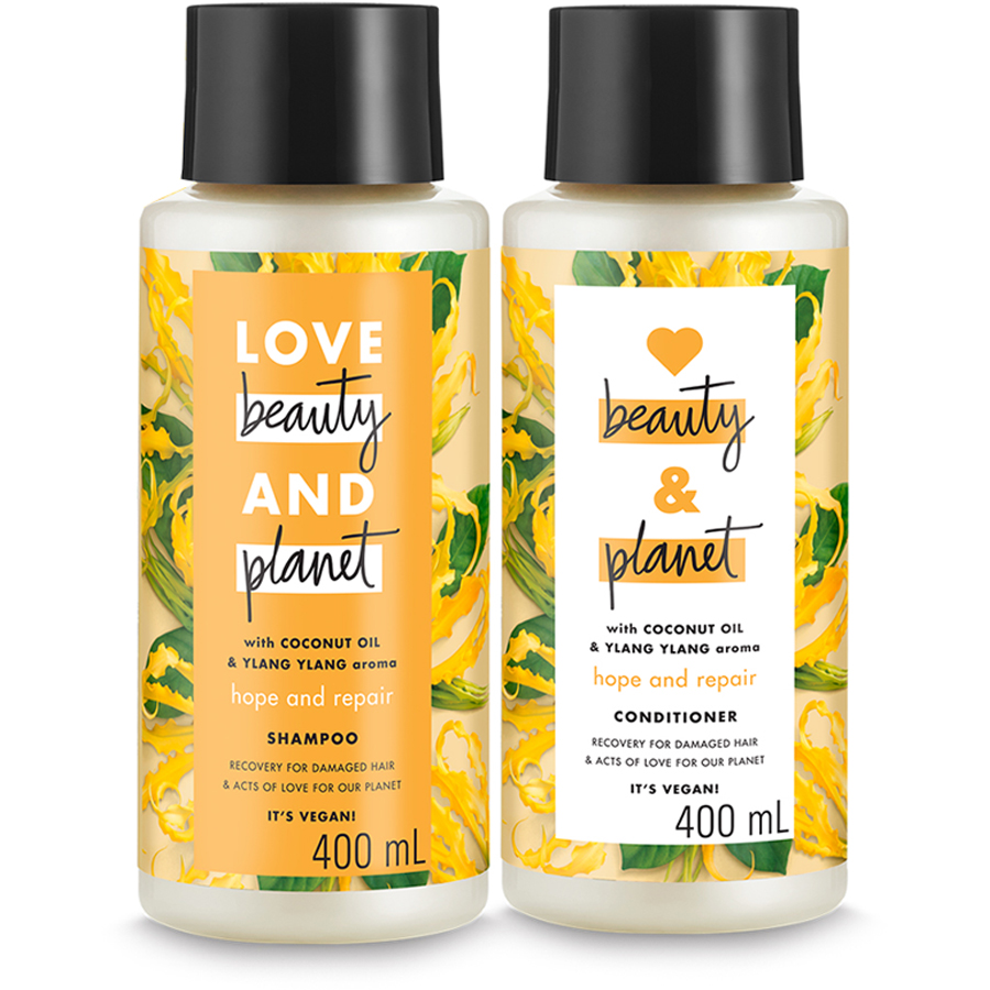 Bộ sản phẩm Combo Phục Hồi Tóc Hư Tổn Dầu Gội & Dầu Xả Love Beauty & Planet (400ml x 2) Thương hiệu: Love Beauty And Planet.