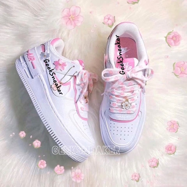 Bộ sản phẩm: Combo Set “Hoa Anh Đào” Air Force 1 Shadow White Magic Flamingo Pink.